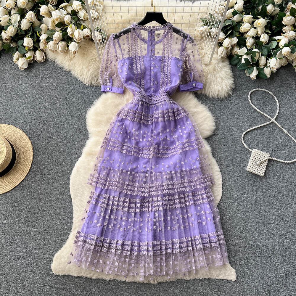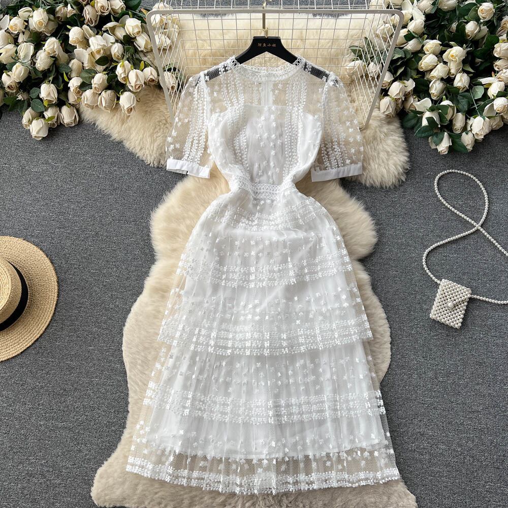 フランスレースドレス夏ドレス中空アウト長いローブパーティー Vestidos ロング サマー 夏物