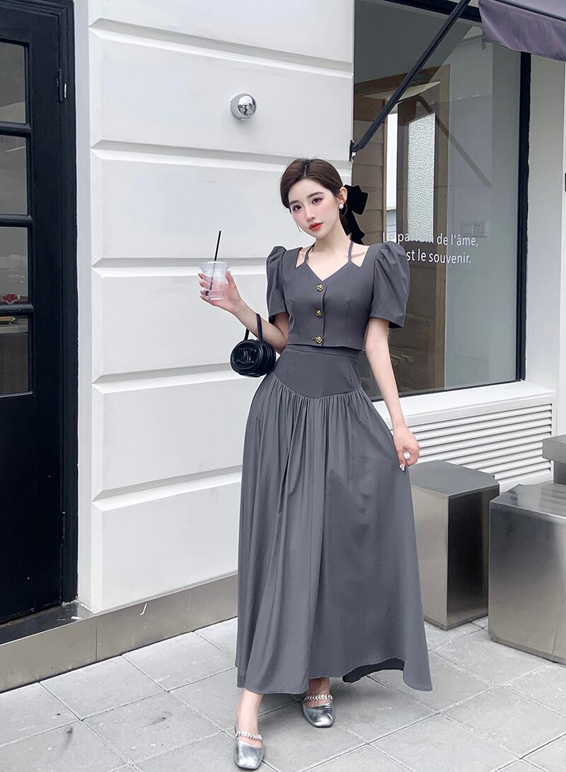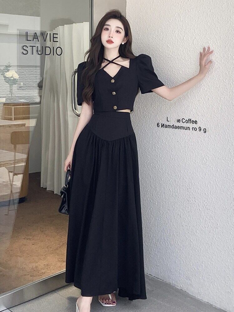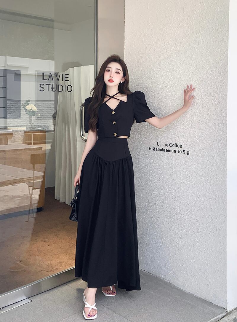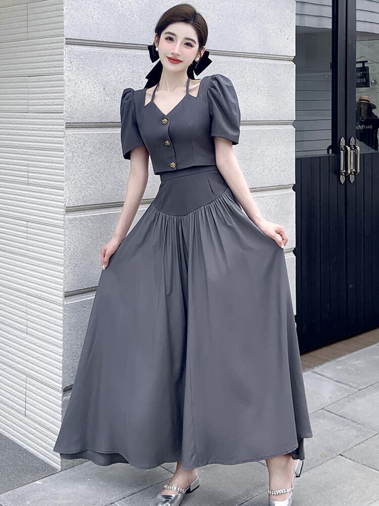夏服装フレンチ小さフレグランス 2 点セット クロップ + ロング スカート セット サマー 夏物