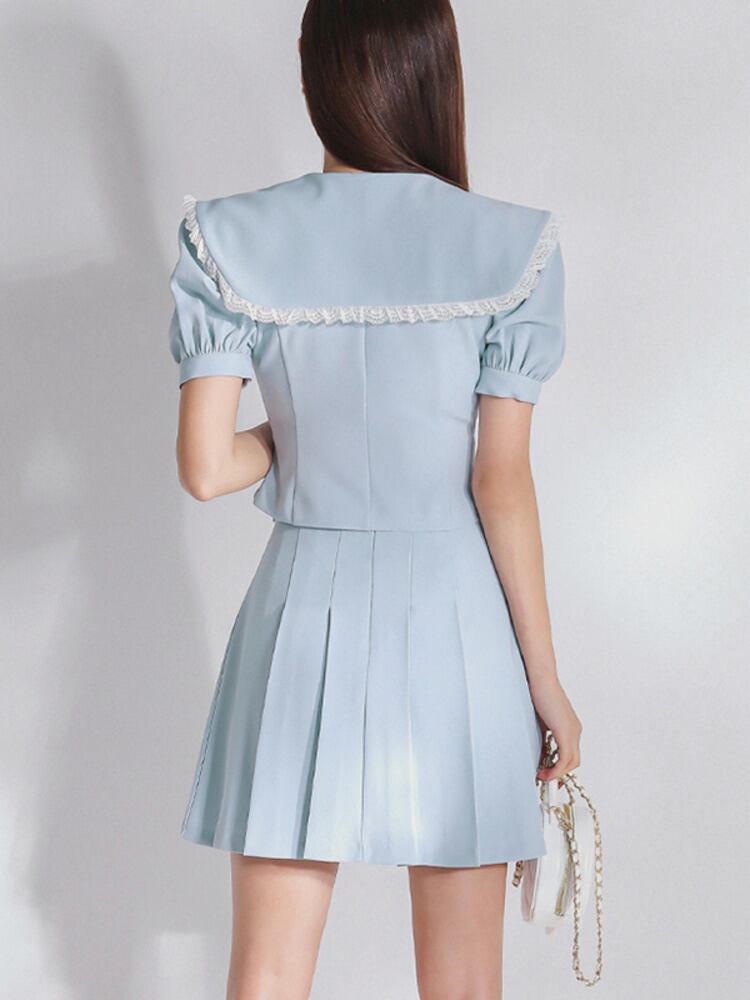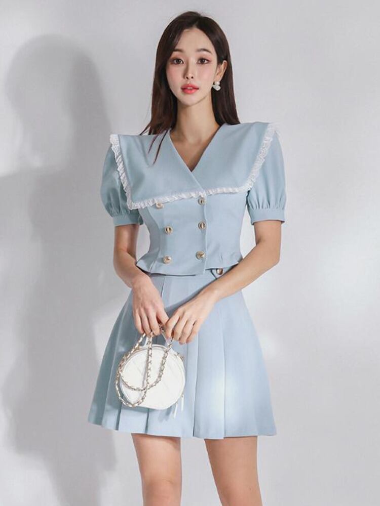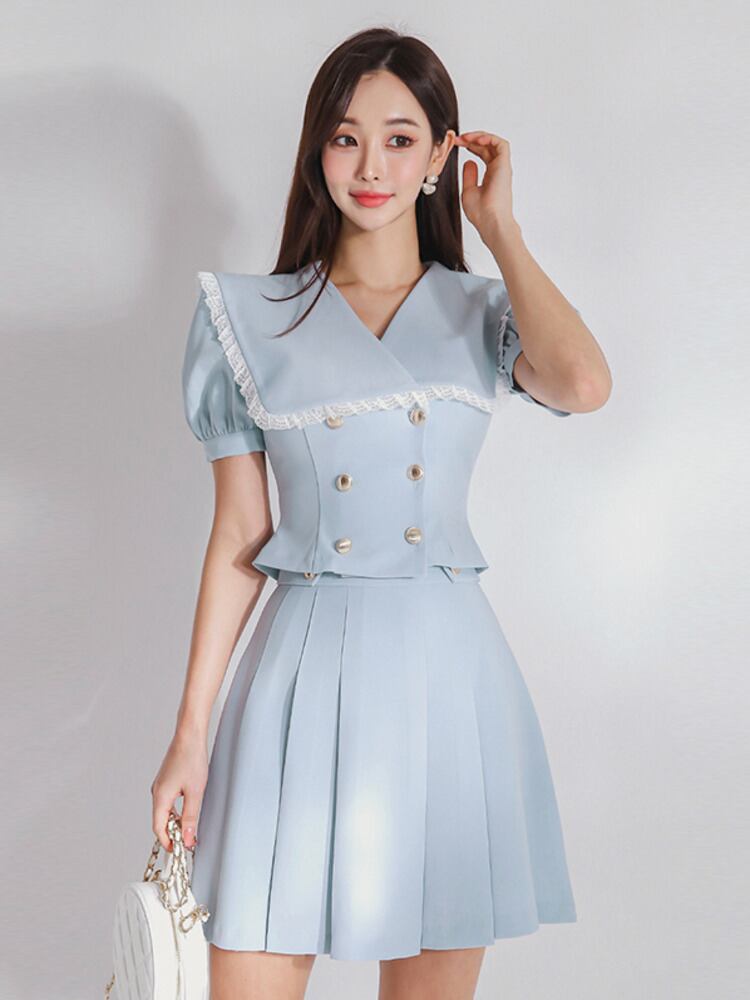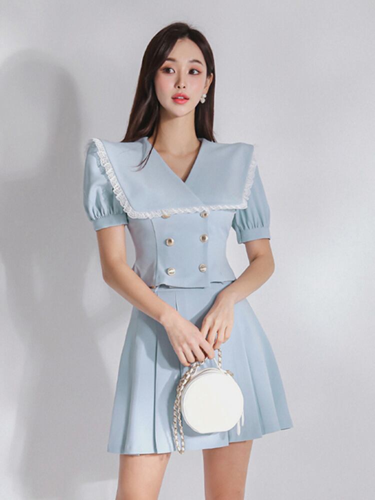 OL スモール フレグランス 2 点セット衣装レース エッジ クロップ トップ + スカート セット夏ツーピース スーツ サマー 夏物