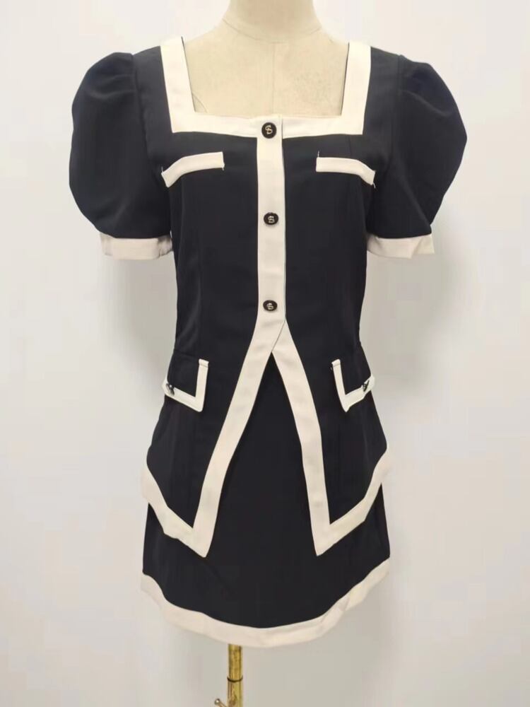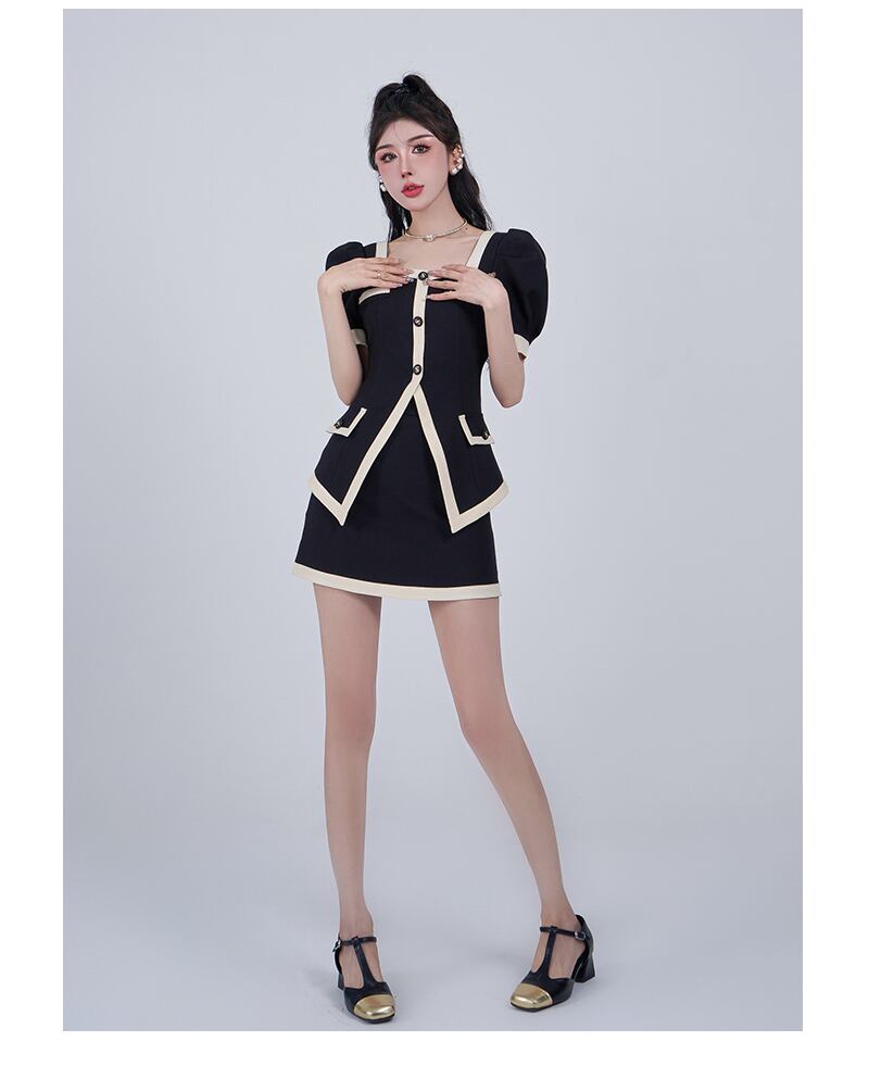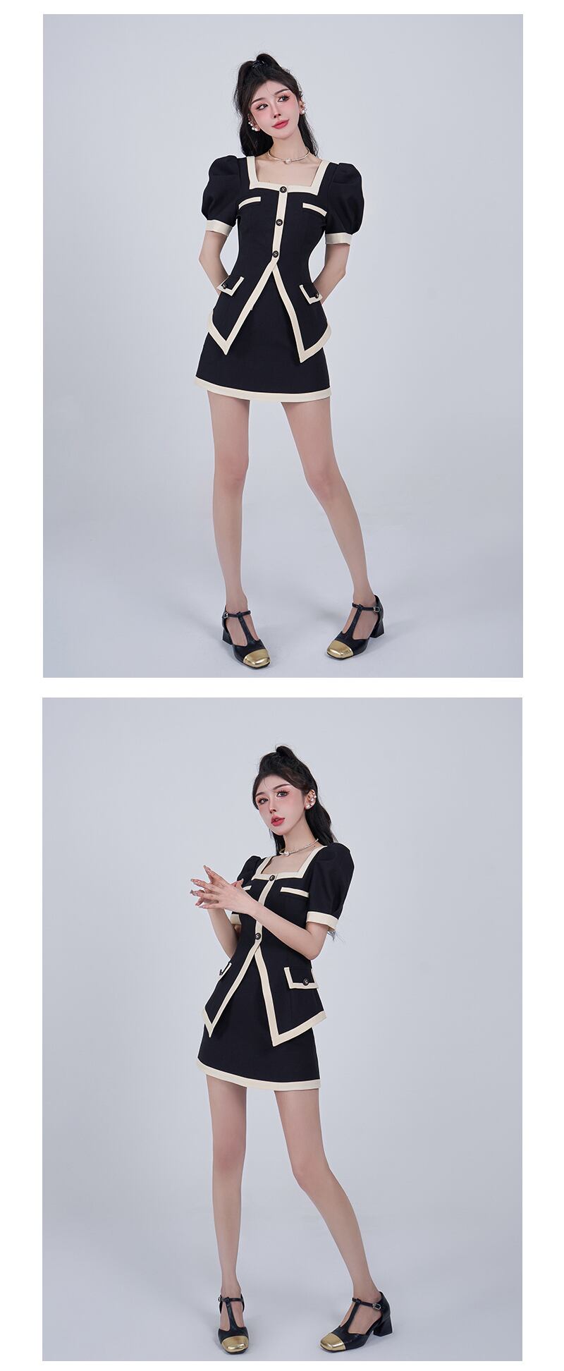 ストリートフレンチスモールフレグランスツーピースセットパフスリーブトップ+スカートセット夏2ピーススーツ サマー 夏物