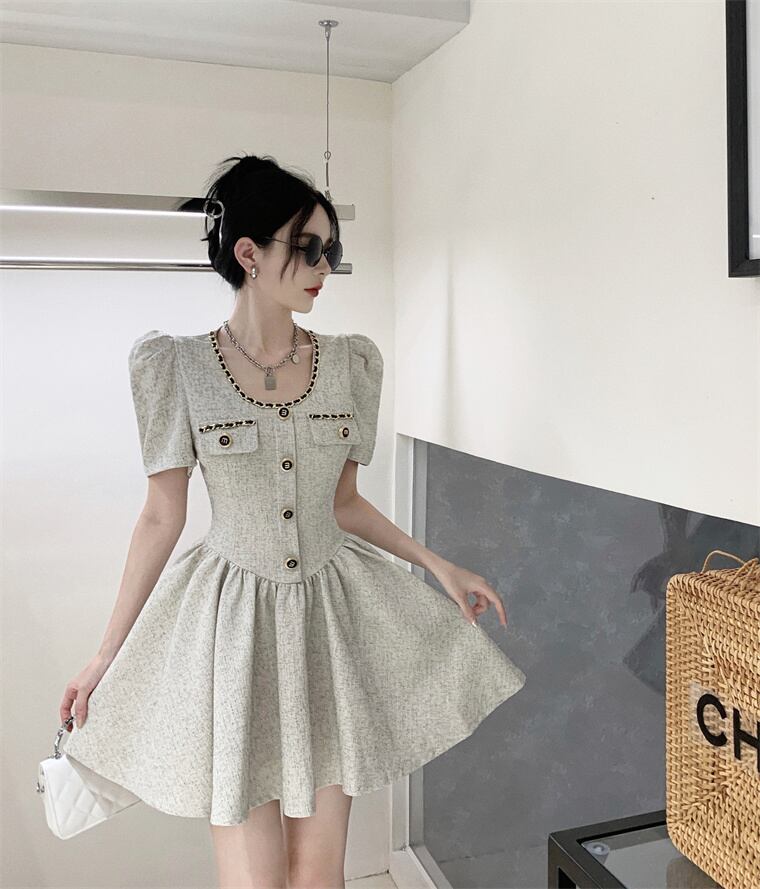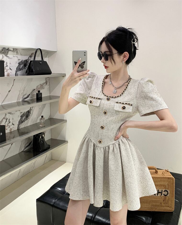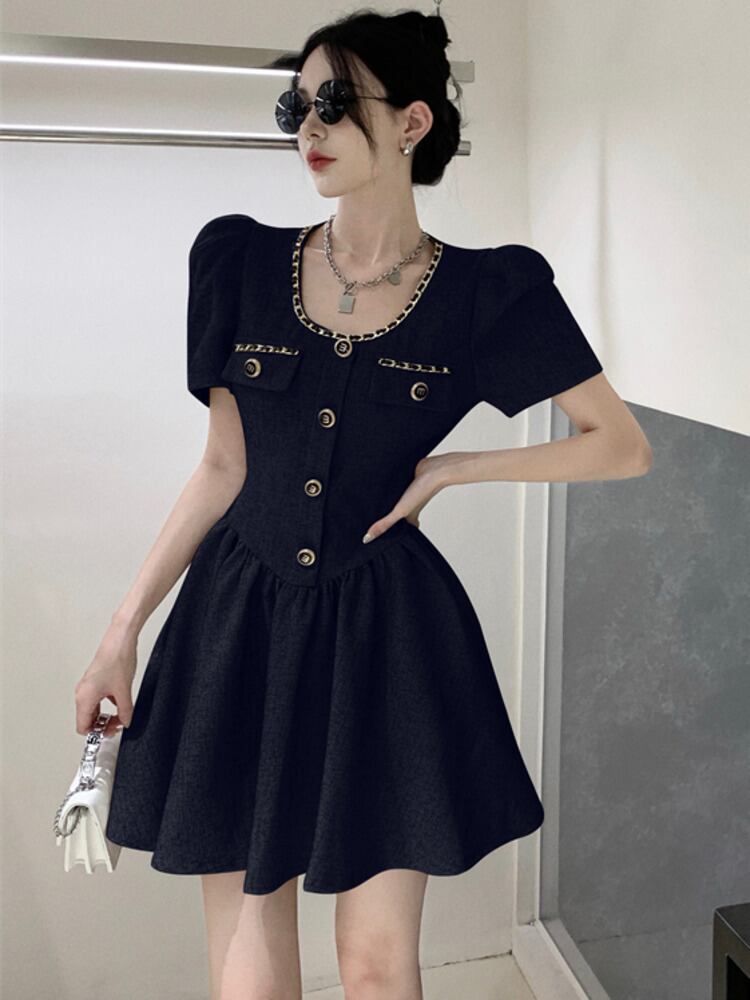 フランス小さ香りプリーツ ショート ドレスミニ サマー ドレス Y2k Vestidos 夏物