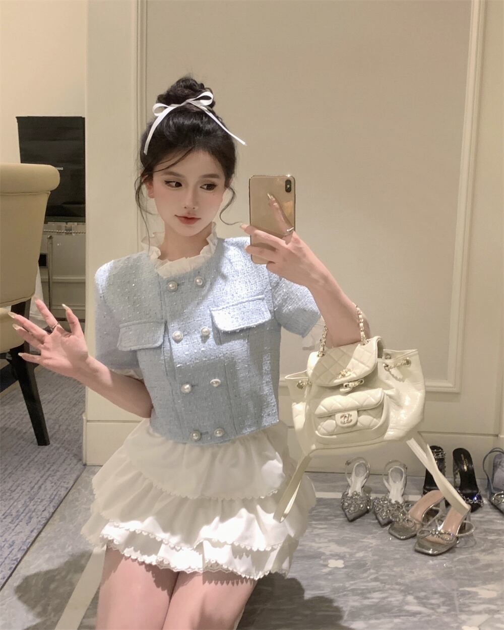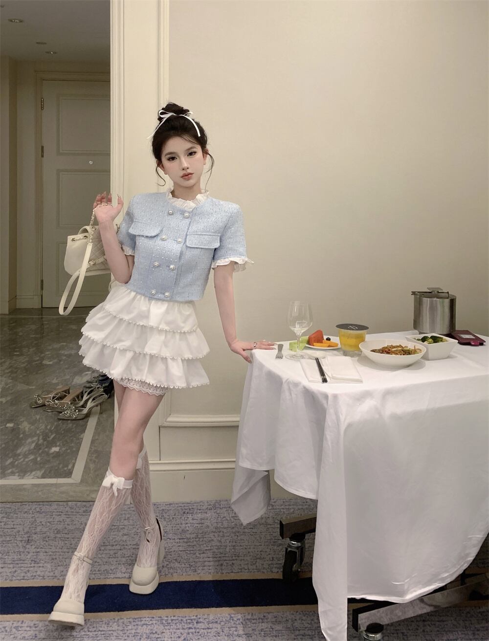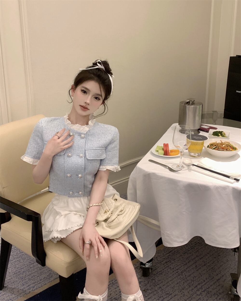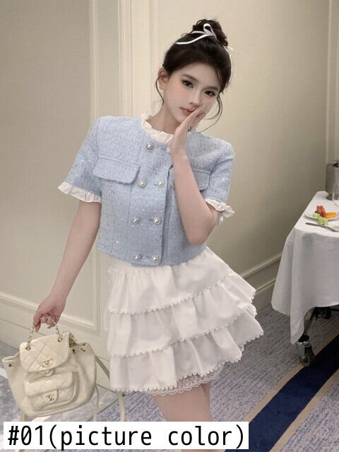 フランス小さフレグランス 2 点セットツイードジャケットコート + スカートスーツ甘い 2 点セット 大人ガーリー スウィート キュート カジュアル