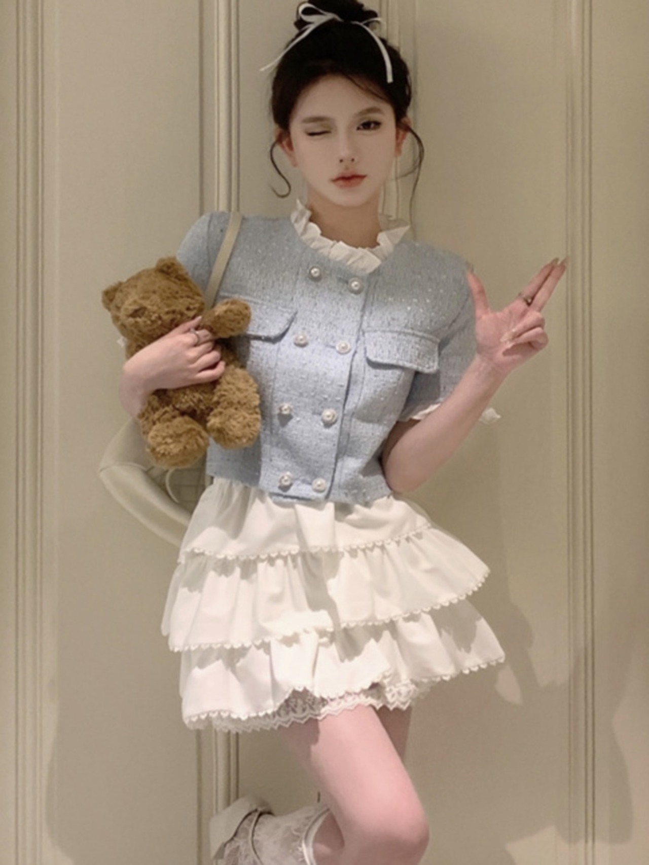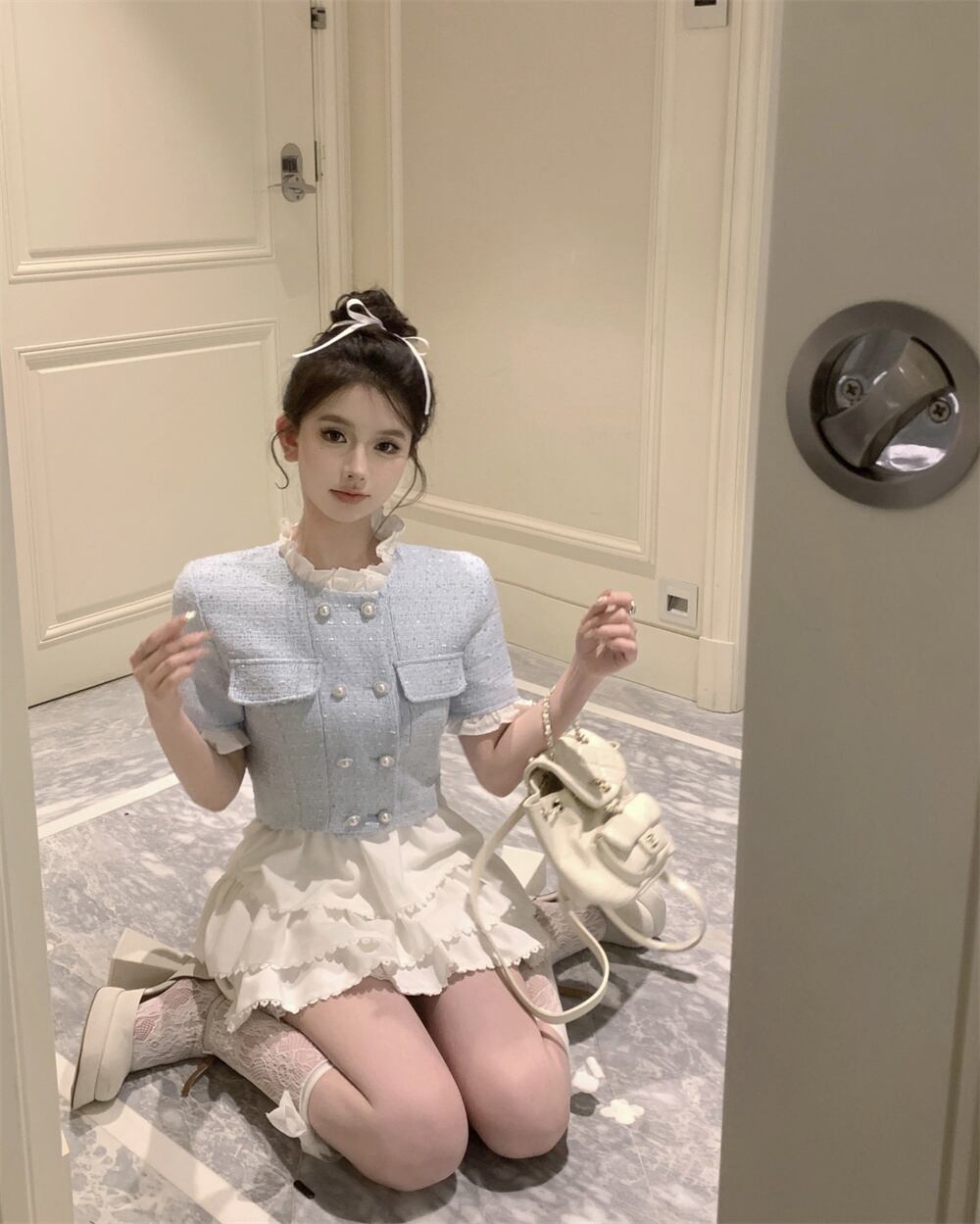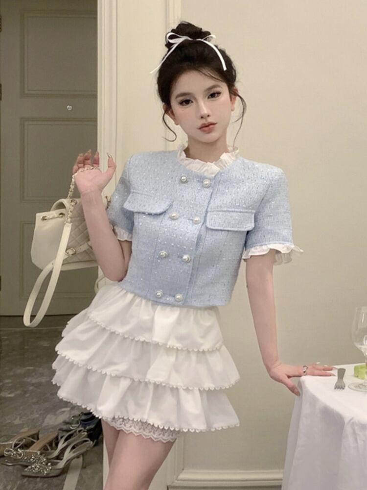 フランス小さフレグランス 2 点セットツイードジャケットコート + スカートスーツ甘い 2 点セット 大人ガーリー スウィート キュート カジュアル