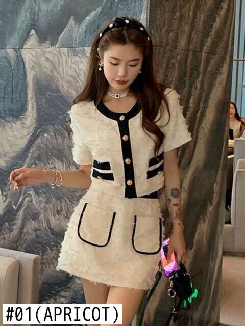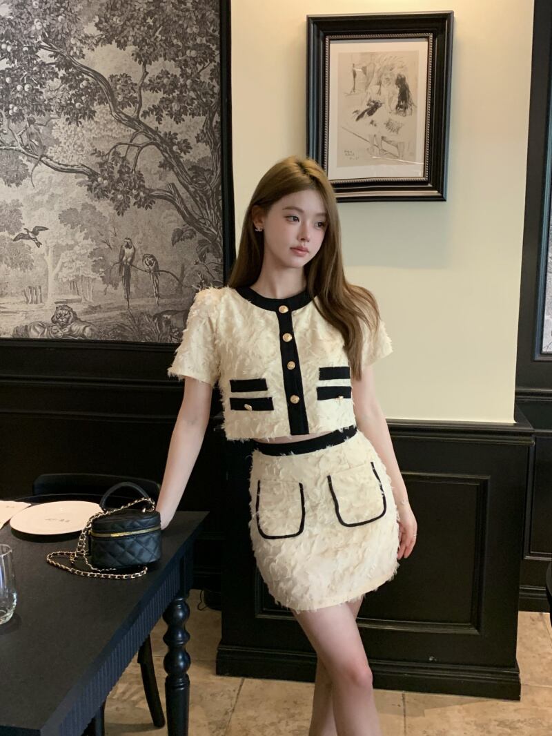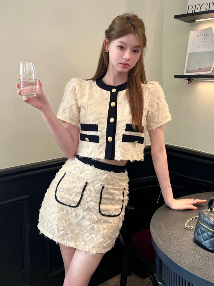 ストリートフレンチスモールフレグランスツーピースセットショートジャケットコート+スカートスーツ甘い2点セット 大人ガーリー スウィート キュート カジュアル
