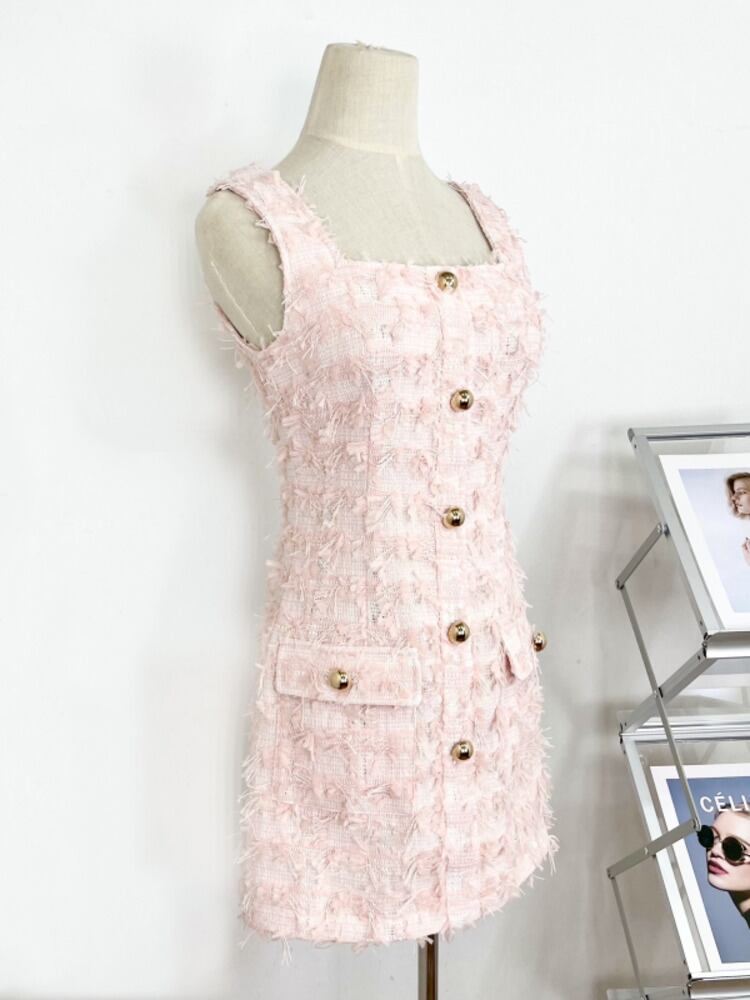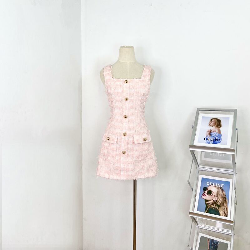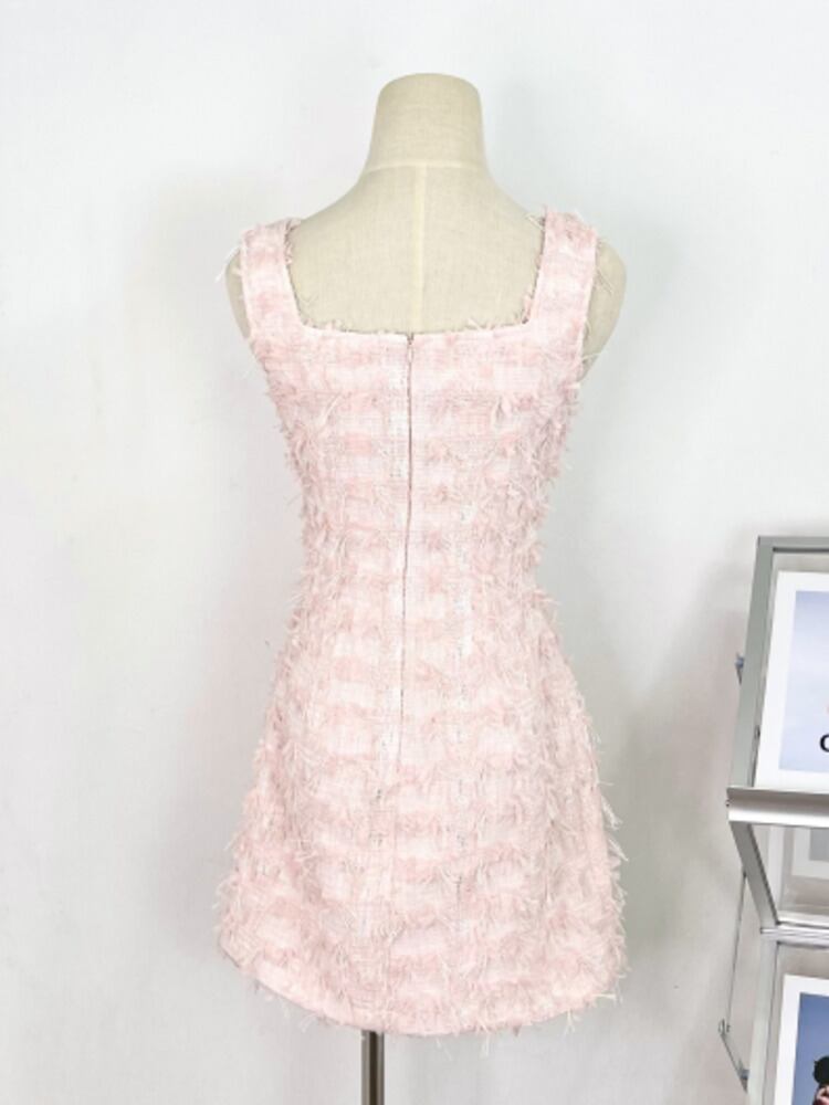Hotsweet ノースリーブセクシースリムウエストミニサマードレス電話ストリート高級小さ香りツイードドレス 大人ガーリー スウィート キュート カジュアル 夏物