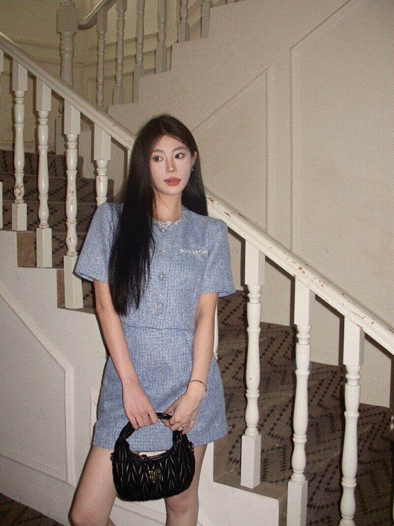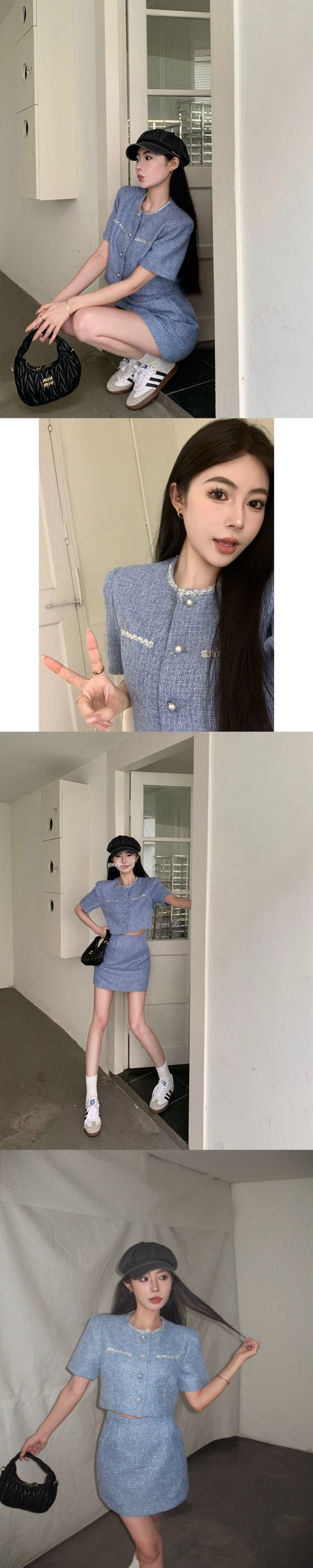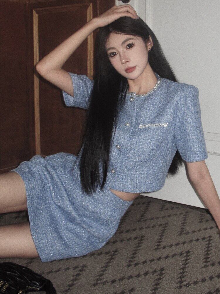 フランス小さ香りツイード 2 点セットショートジャケットコート + スカートスーツ夏 2 ピース衣装 サマー 夏物