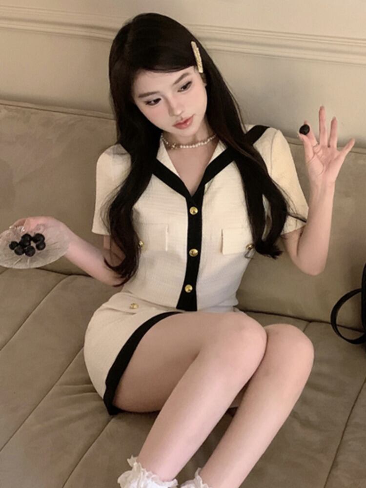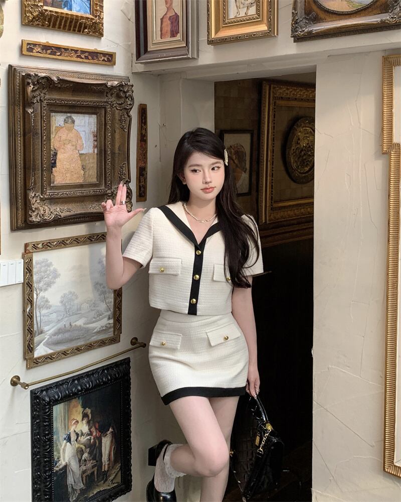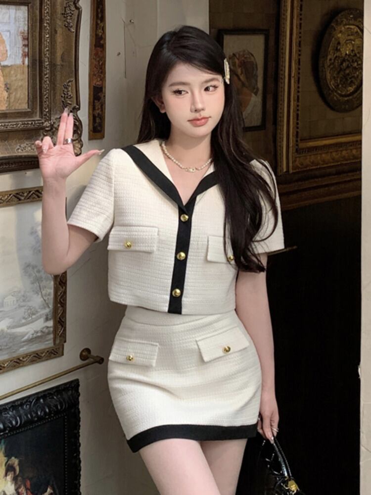 フランス小さフレグランスツイード 2 点セットショートジャケットコート + スカートスーツ夏 2 ピース衣装 サマー 夏物