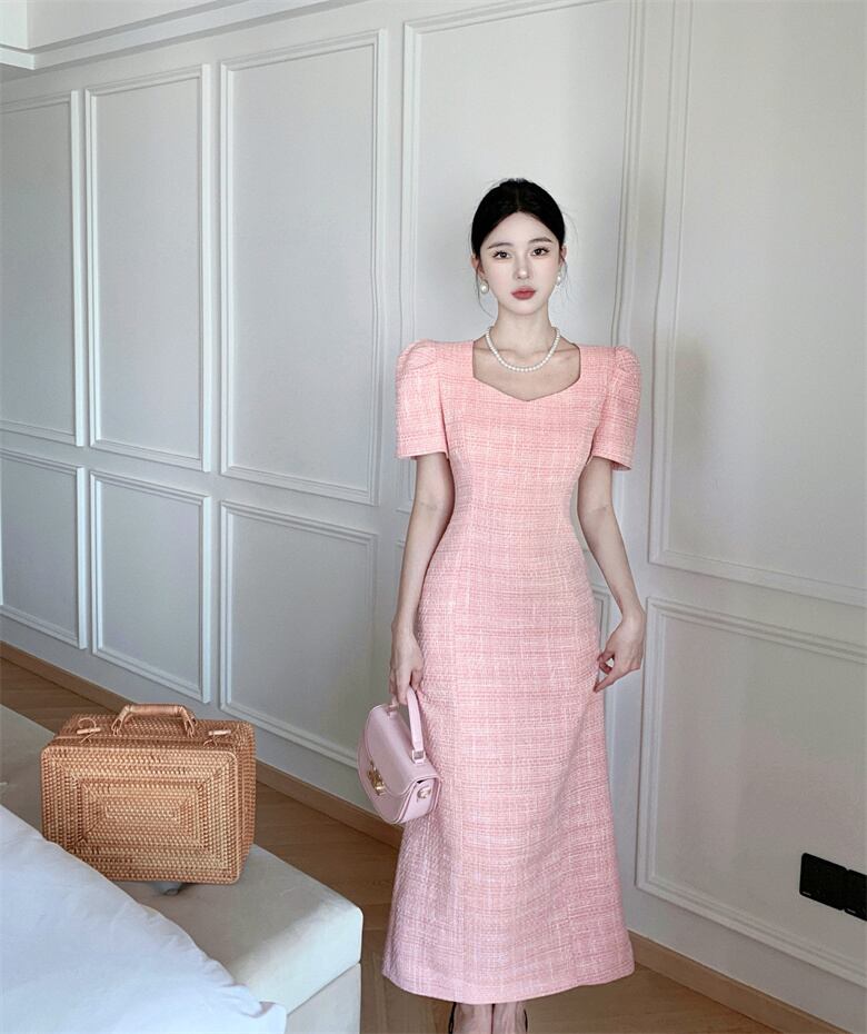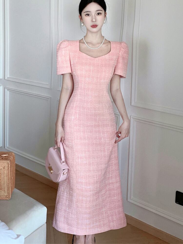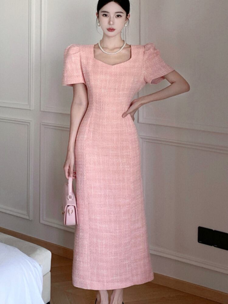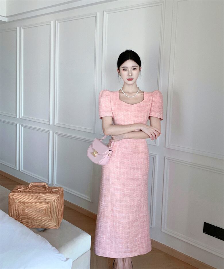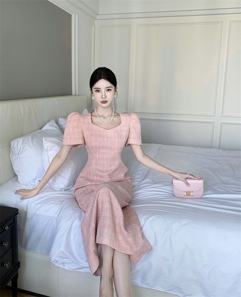 フレンチスモールフレグランスツイードドレスシックスリムパーティードレスサマードレス 夏物