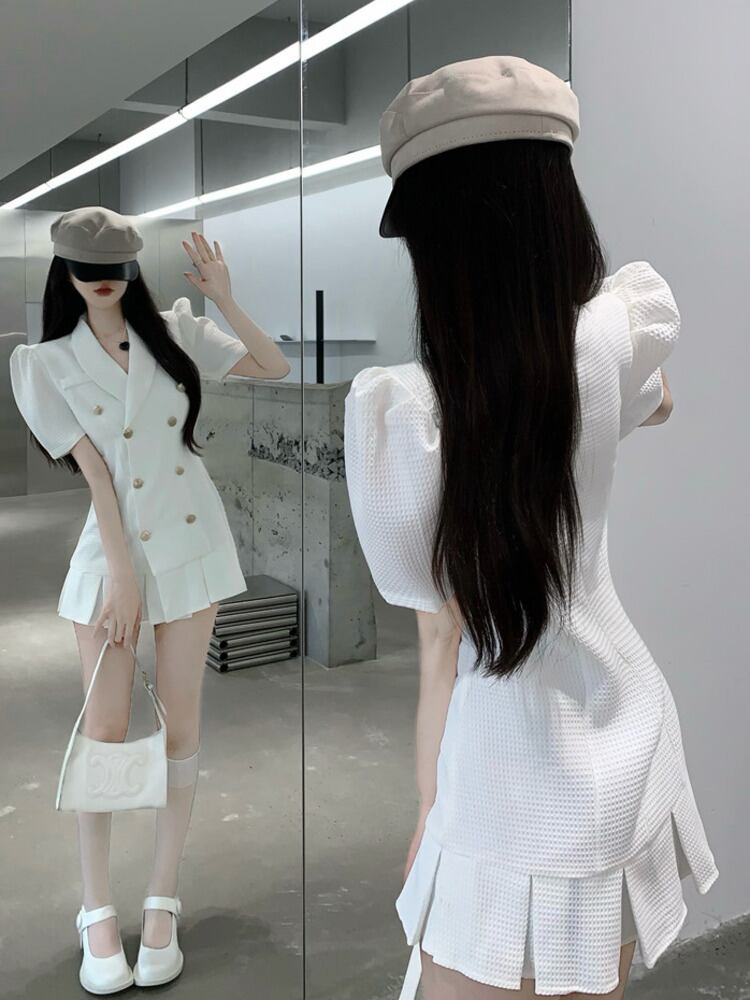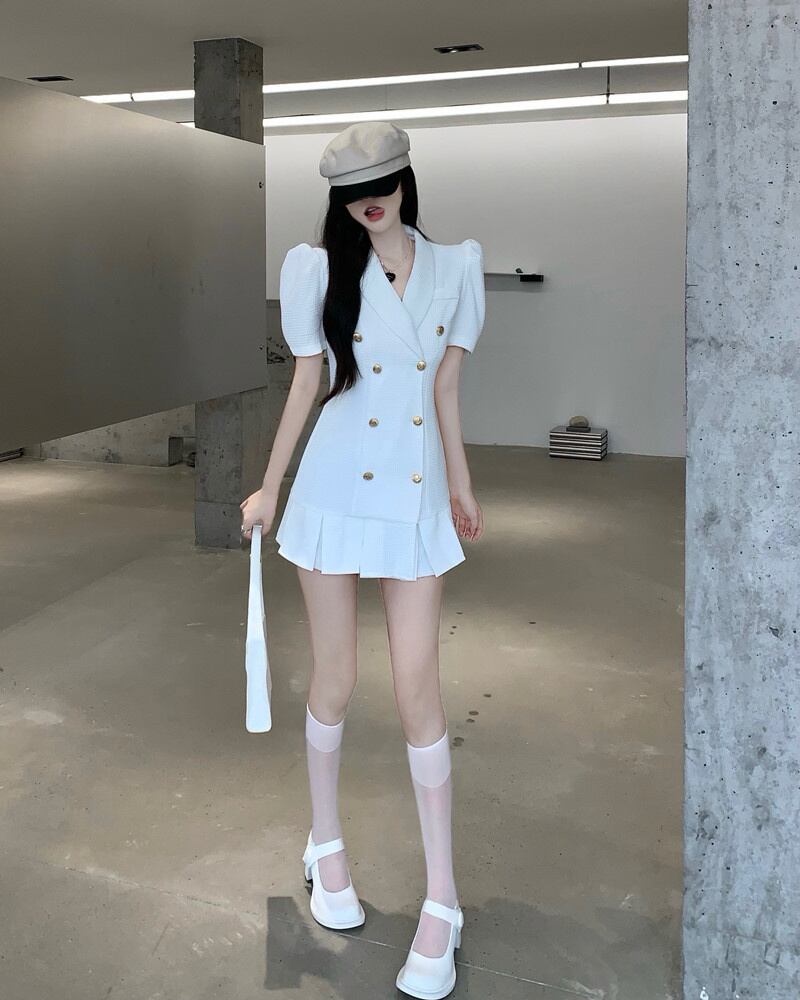 夏ブレザードレスフランス気質パフ半袖オフィスレディミニドレスローブ Vestidos ショート ハーフスリーブ サマー 夏物 会社 学校 通勤や通学にも