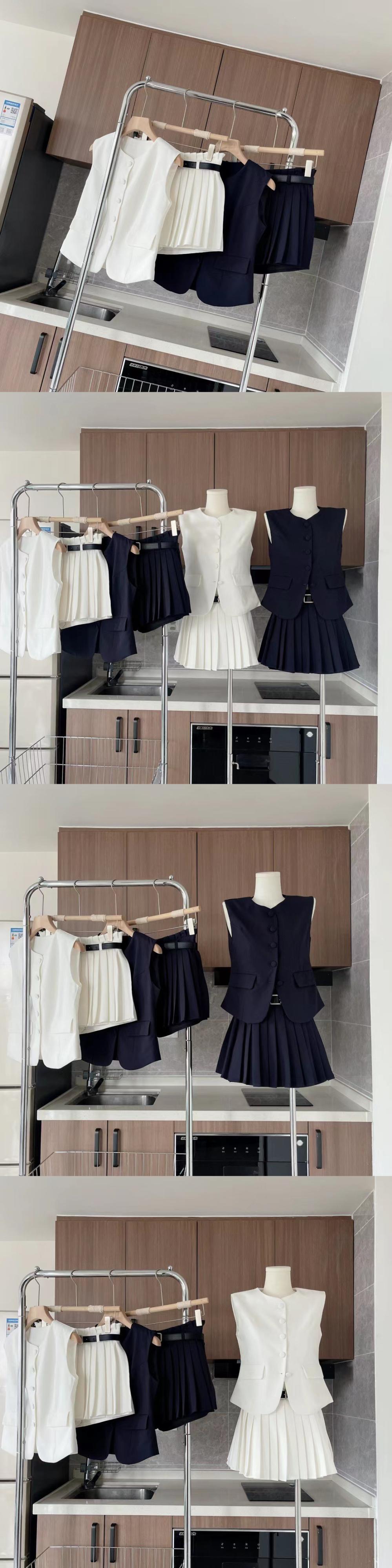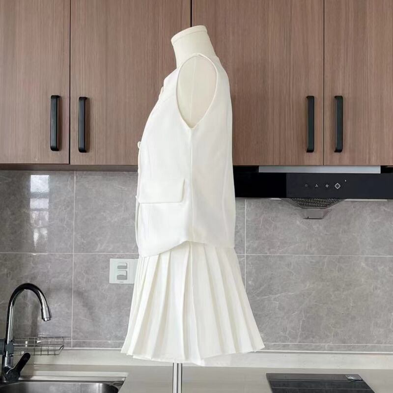 -end ツーピースセットブレザーベストトップ + スカートスーツオフィスレディ 2 点セット Conjuntos Curtos 会社 学校 通勤や通学にも