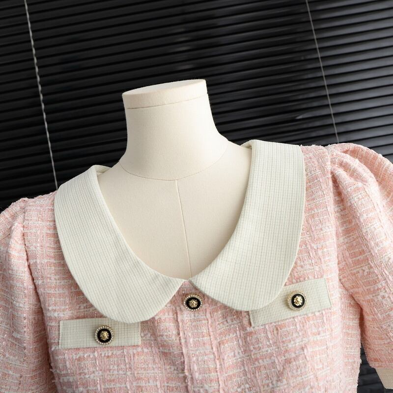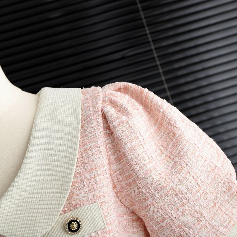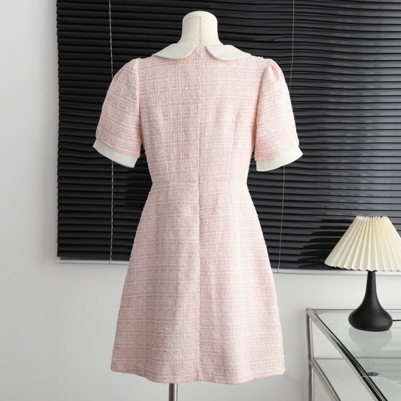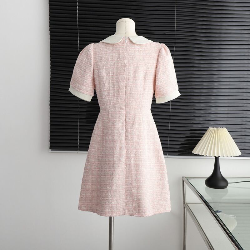 フレンチツイード小さフレグランスドレス甘いスリムウエストミニサマードレスローブ 大人ガーリー スウィート キュート カジュアル 夏物