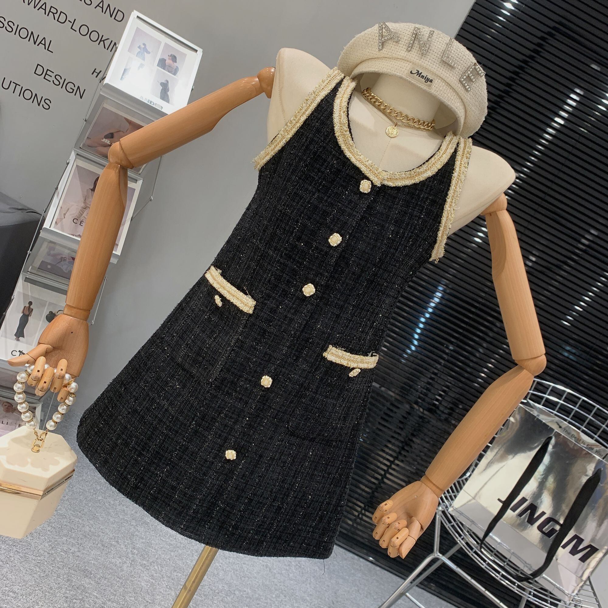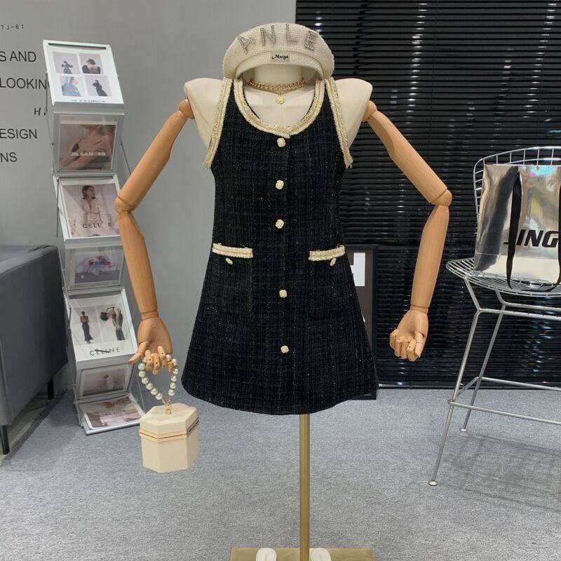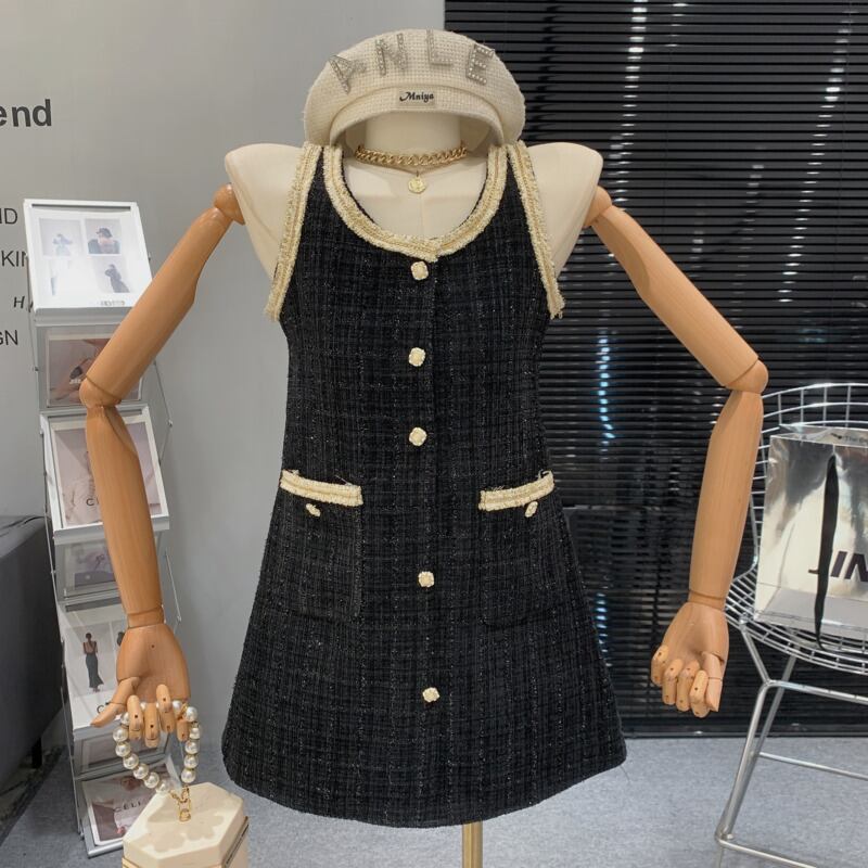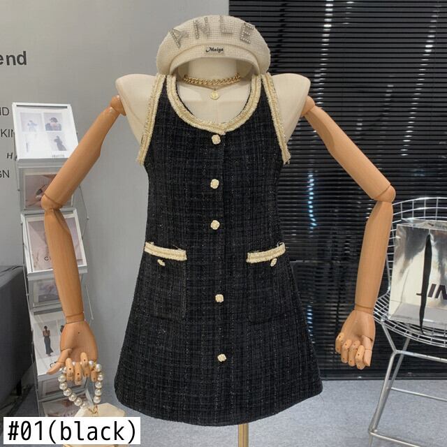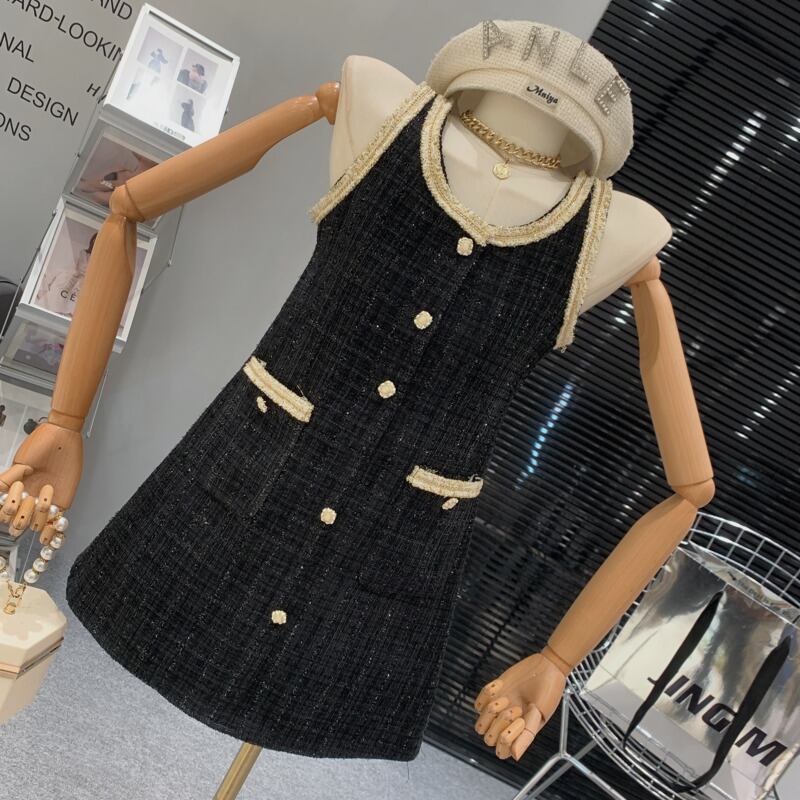 フランス小さフレグランツイードドレスルースウールサマードレスパーティー Vestido Feminino 夏物