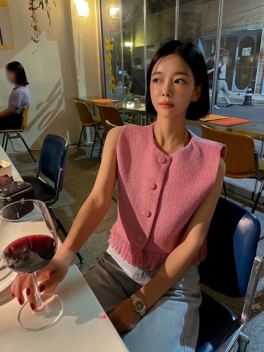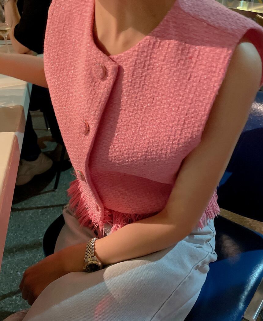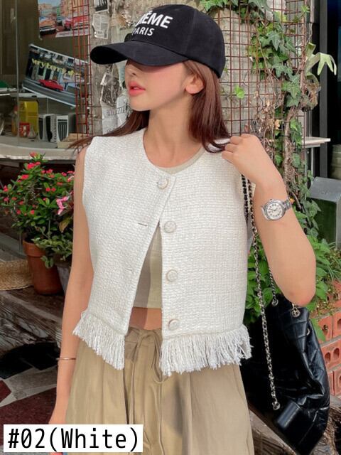 ストリートフレンチ小さ香りラウンドネックルーズツイードベストジャケット電話ウールショートコートアウターカサコ Oネック