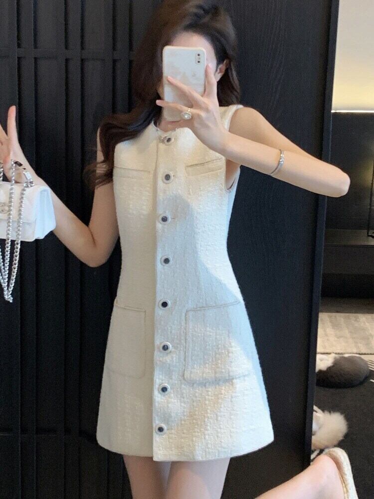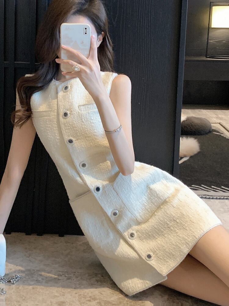 ストリートフレンチスモールフレグランツイードドレスウールサマードレスパーティー Vestidos 夏物
