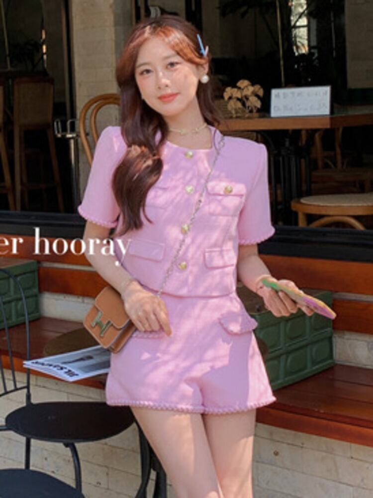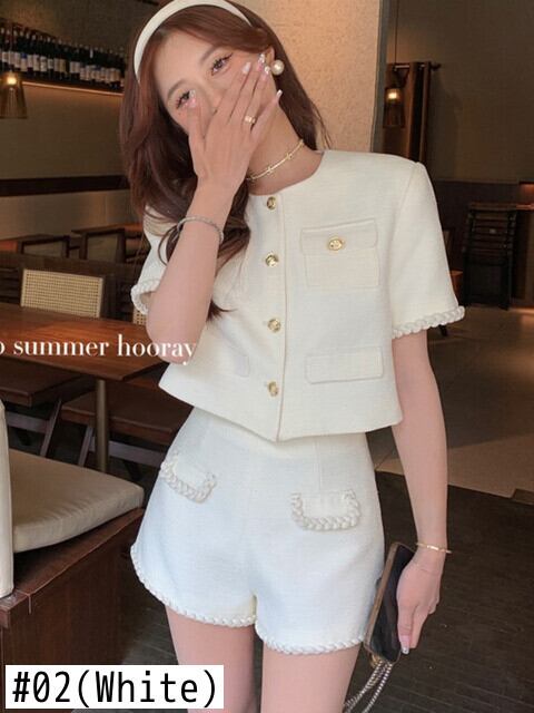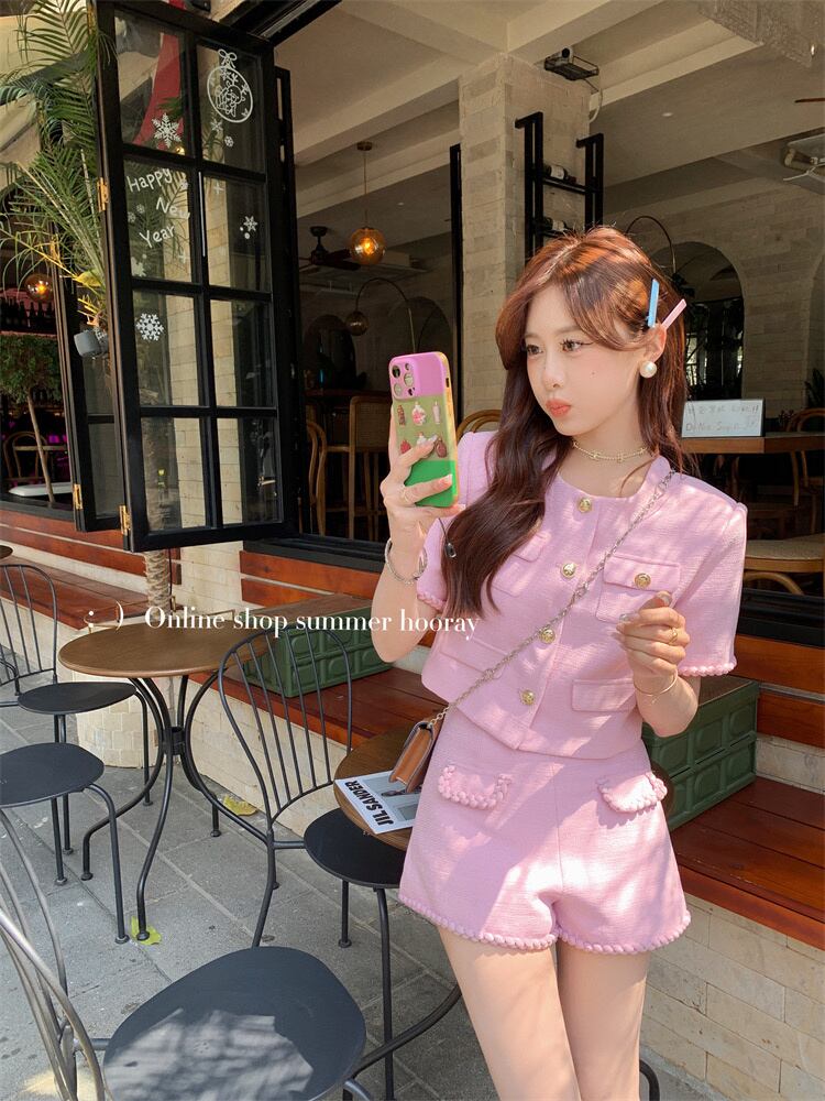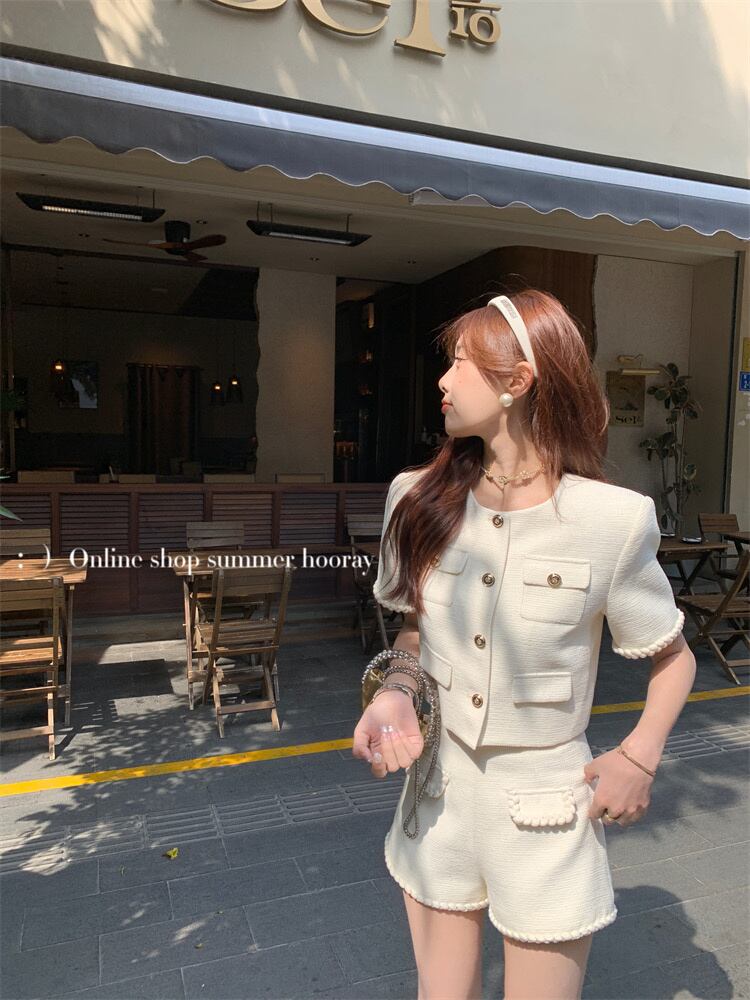 ストリートフレンチ小さ香りツーピースセットサマージャケットコート+ショートセット甘い2ピースパンツセット 大人ガーリー スウィート キュート カジュアル 夏物