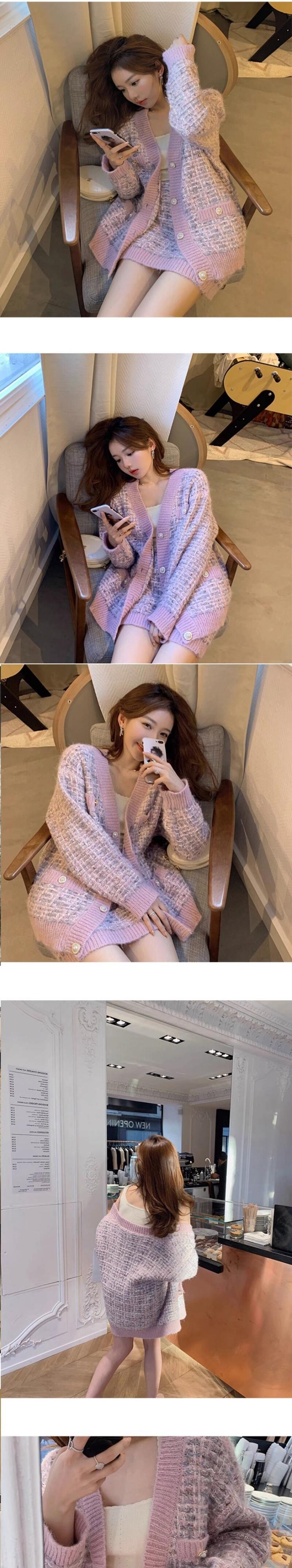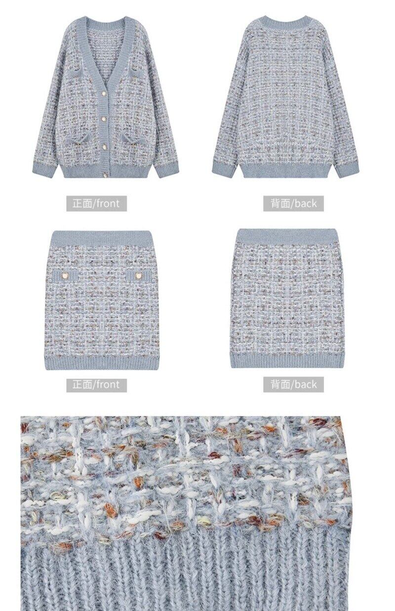 秋冬セータースーツニット2点セットカーディガンコート&ボディコンミニスカート2点セットレディース ウィンター 冬物