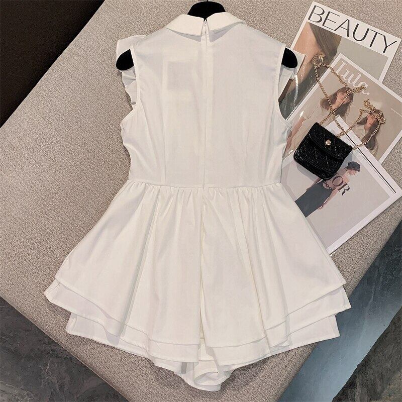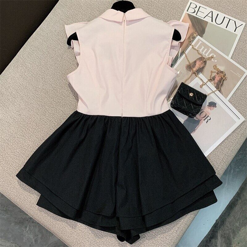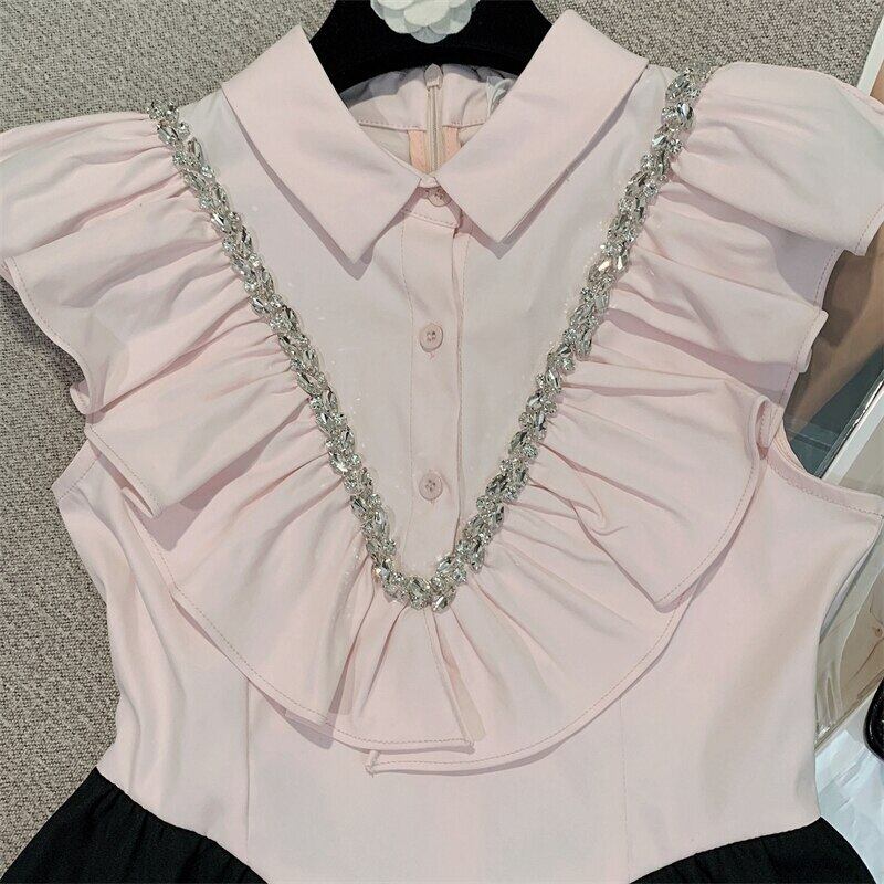 甘いノースリーブフリルスリムウエストサマードレスフレンチ高級ダイヤモンドケーキショートドレス Vestido Feminino ラッフル 大人ガーリー スウィート キュート カジュアル 夏物