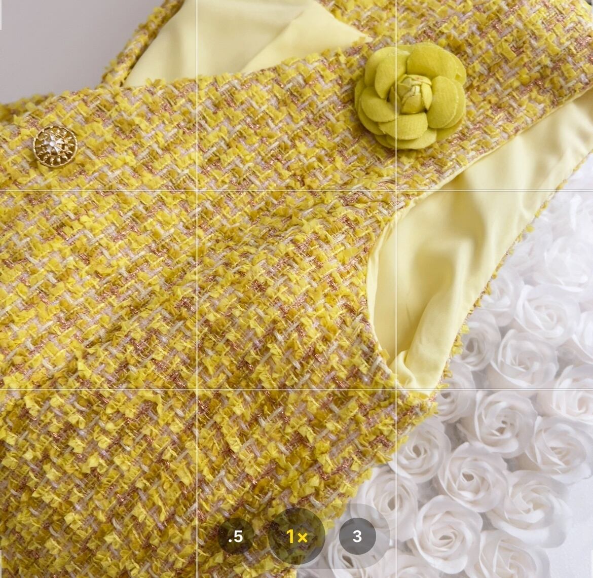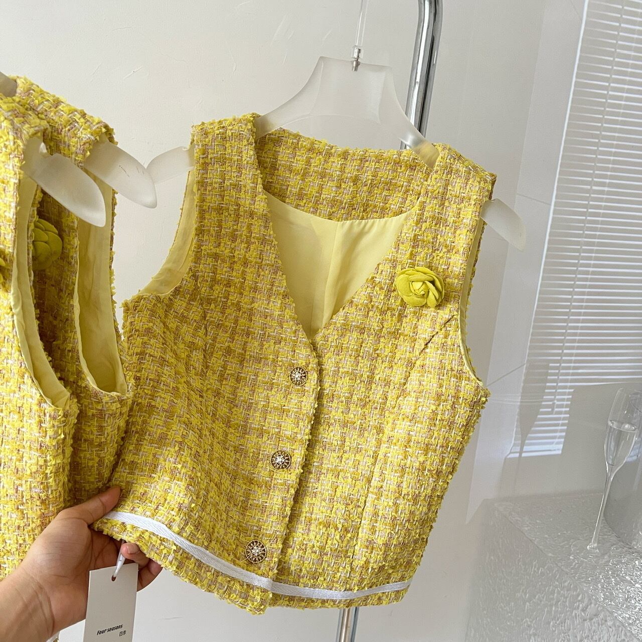 ストリートフレンチ小さ香りツイードベストジャケット夏シック黄色ショートコートアウタートップス サマー 夏物