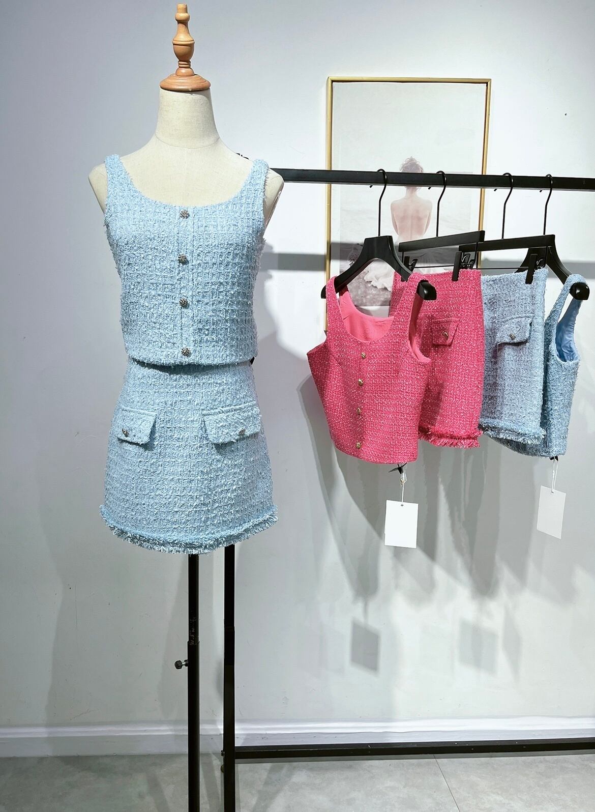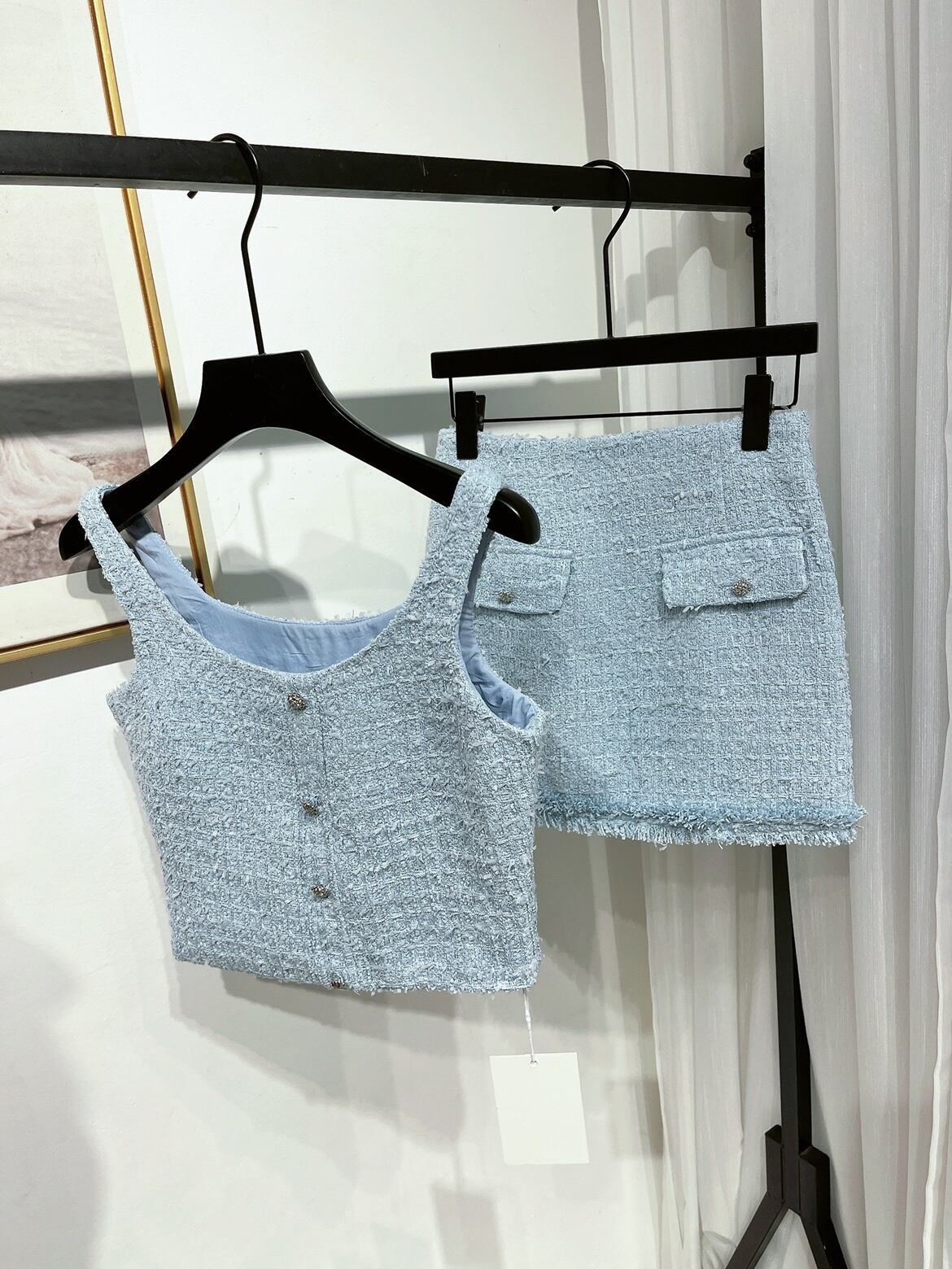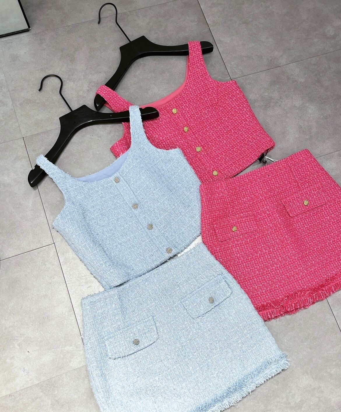 フランス小さフレグランスツイード 2 ピースセット衣装夏セクシーベストトップ + スカートツーピーススーツ サマー 夏物