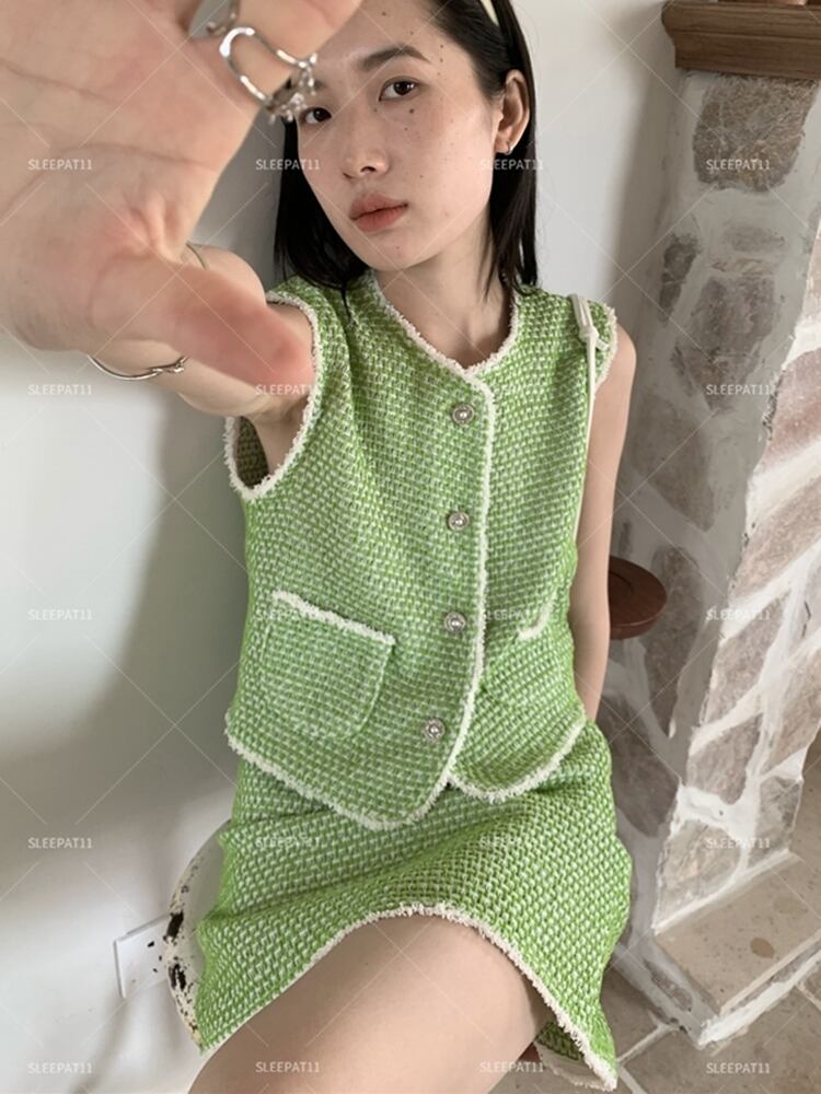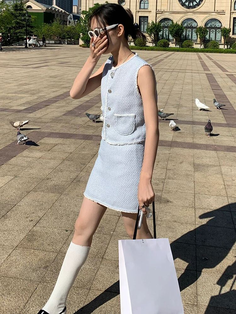 ストリート小さフレグランス 2 ピースセット衣装夏ベストジャケット + スカートスーツ夏ツーピース衣装 サマー 夏物