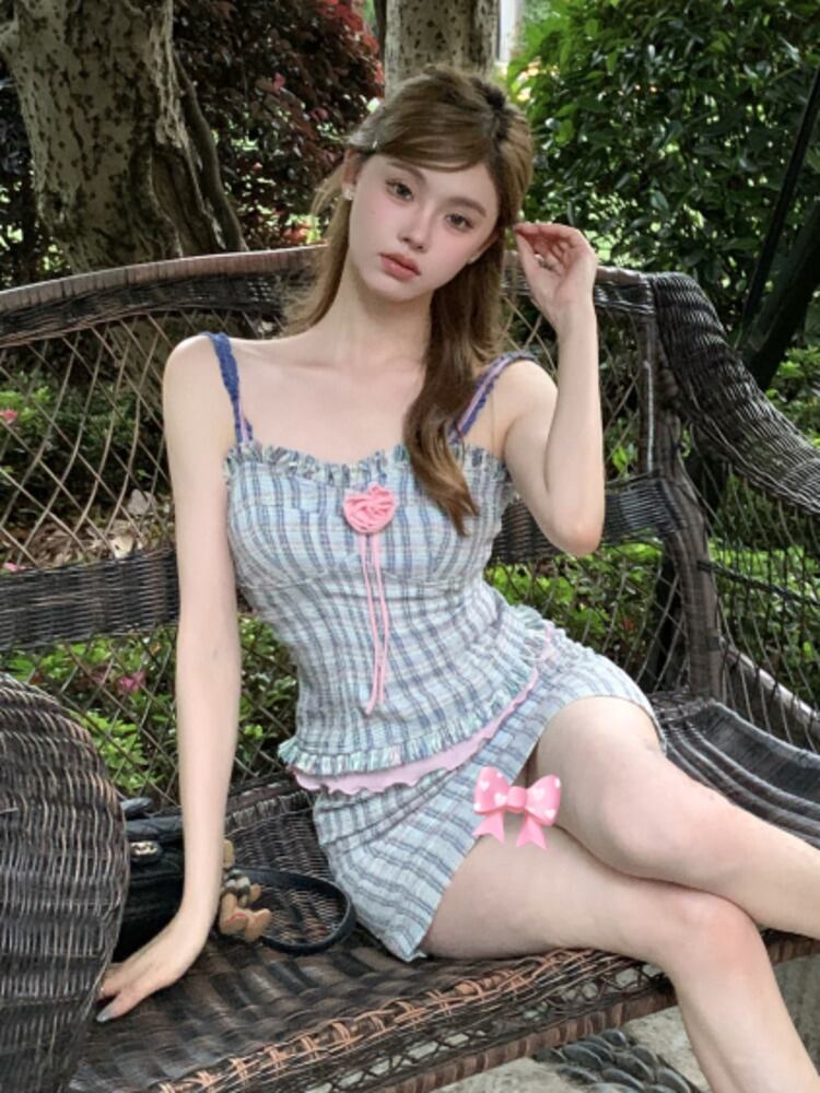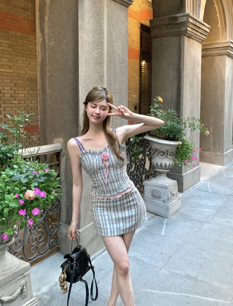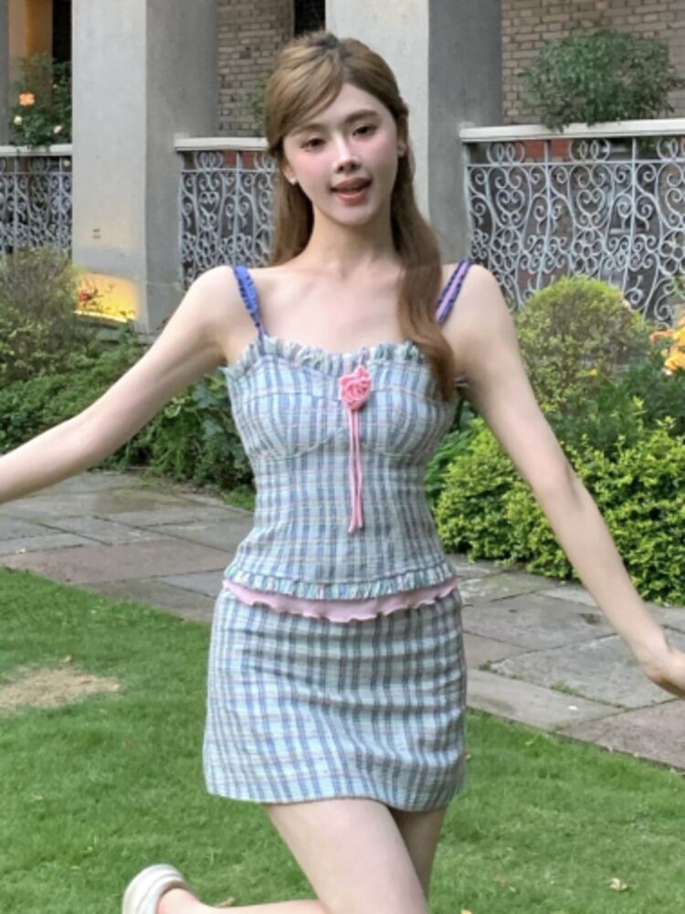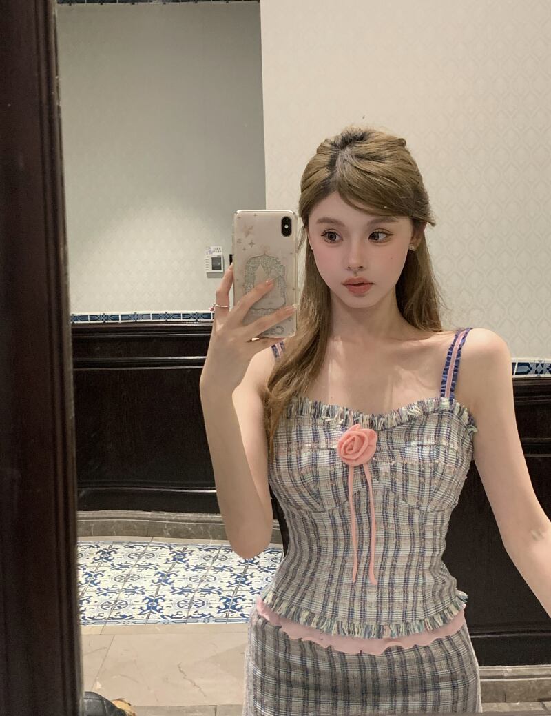 フランス小さ香りツーピースセットセクシースリングクロップトップ + スカートスーツ 3D フラワー 2 ピースセット フラワーデザイン