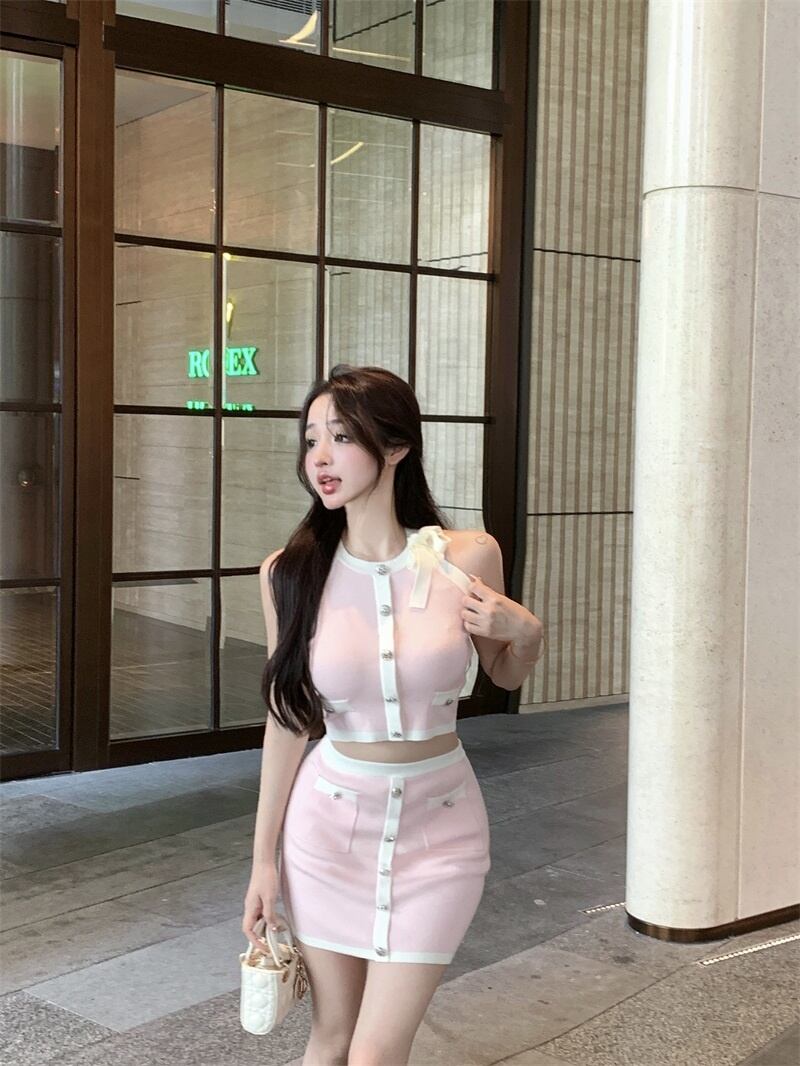 フレンチスモールフレグランスニット2点セット服甘いプルオーバートップ+ボディコンスカート2点セット 大人ガーリー スウィート キュート カジュアル