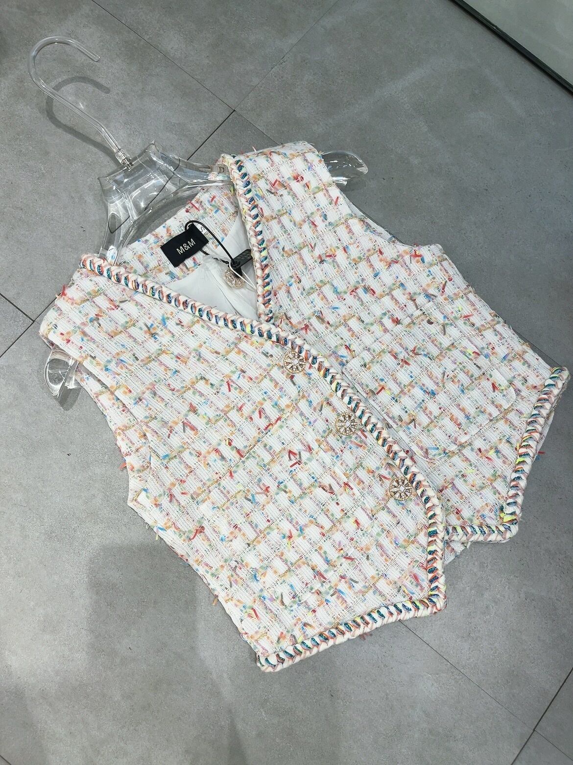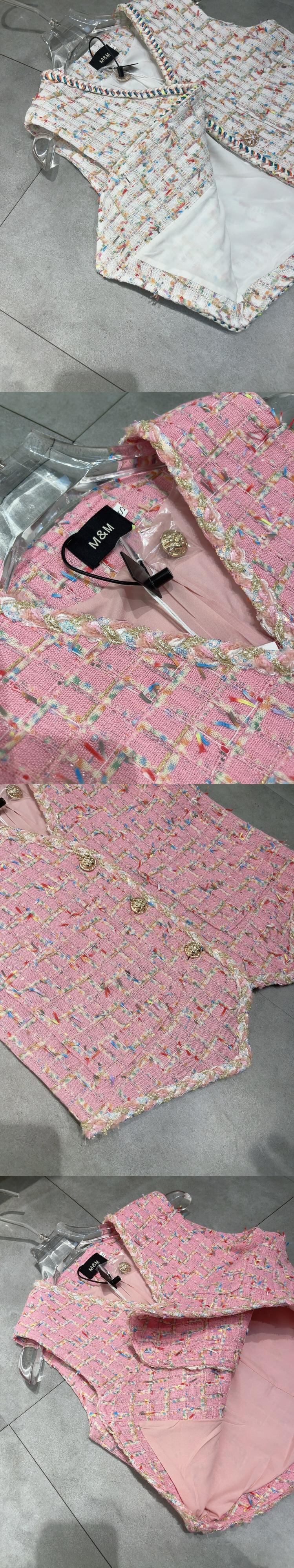 ストリートフレンチ小さ香り夏ノースリーブストリートチェック柄ツイードベストジャケットコート サマー 夏物