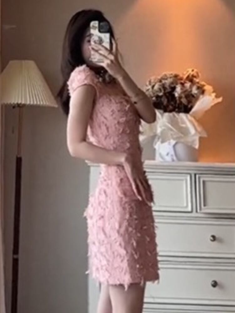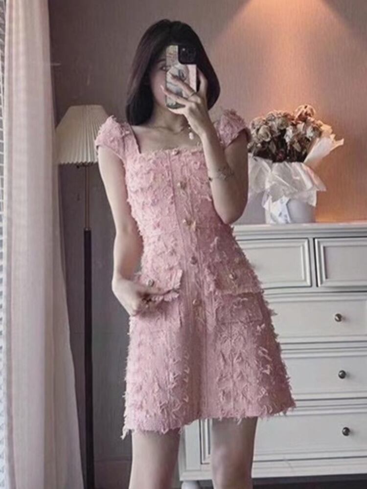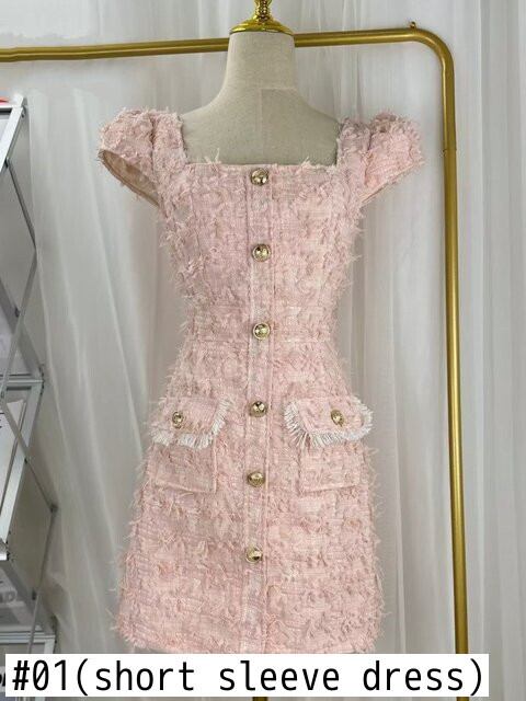 フランス高級電話小さ香りツイードドレス甘いサマードレスパーティー Vestidos 大人ガーリー スウィート キュート カジュアル 夏物