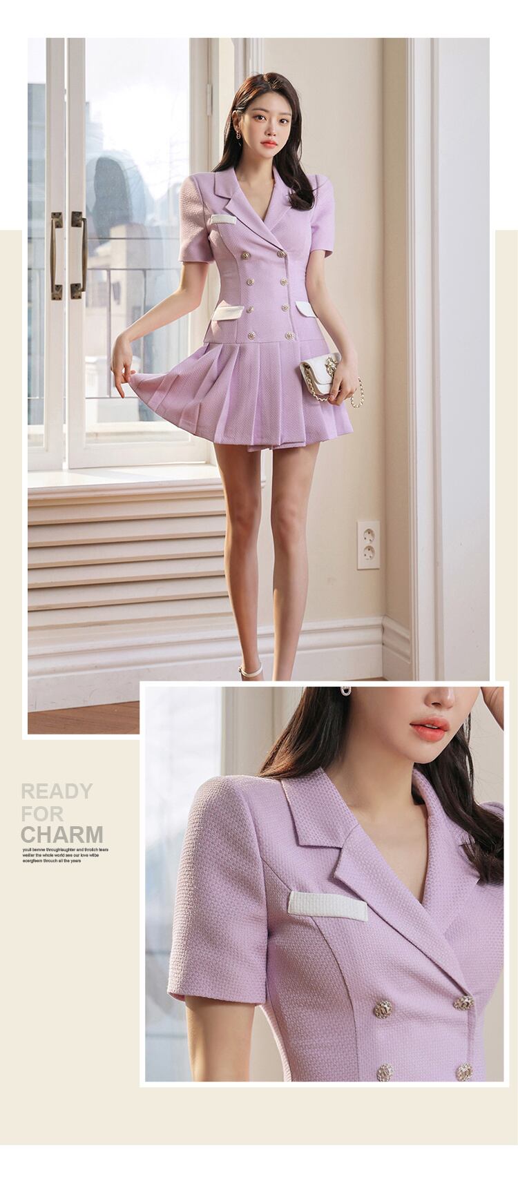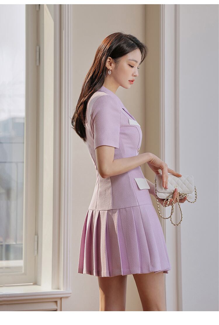 フレンチスモールフレグランスプリーツショートドレスOLサマースーツドレスVestidos 夏物