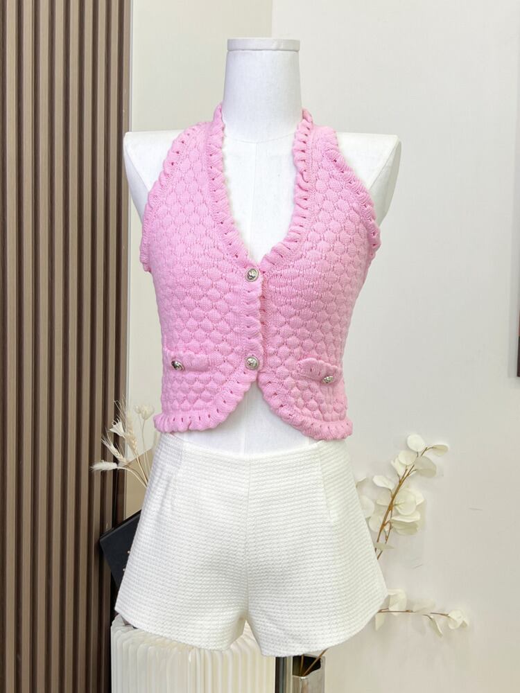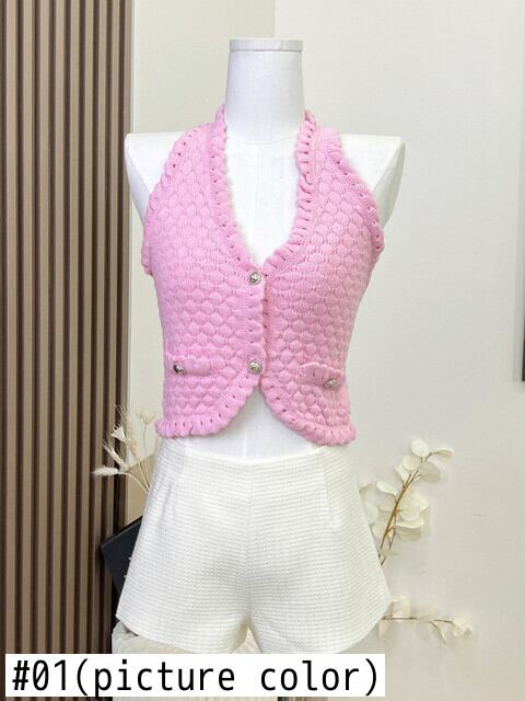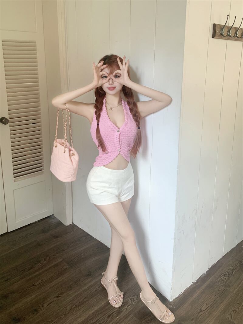 Hotsweet 小さ香りツーピースセット背中開いたセクシーニットベストクロップトップ + ウエストショートセット夏 2 ピースパンツセット 大人ガーリー スウィート キュート カジュアル サマー 夏物