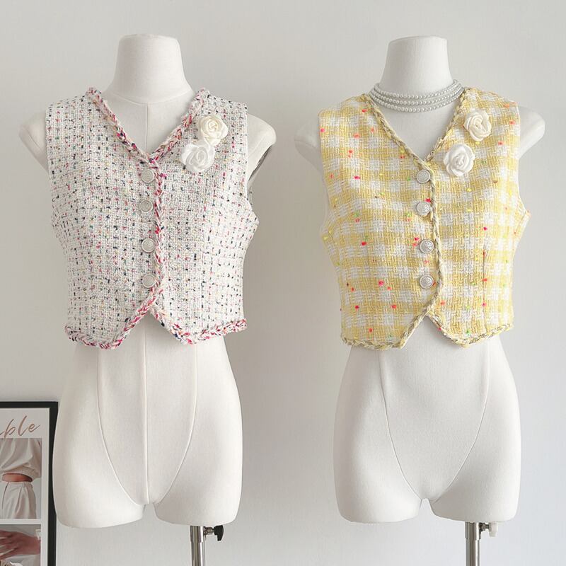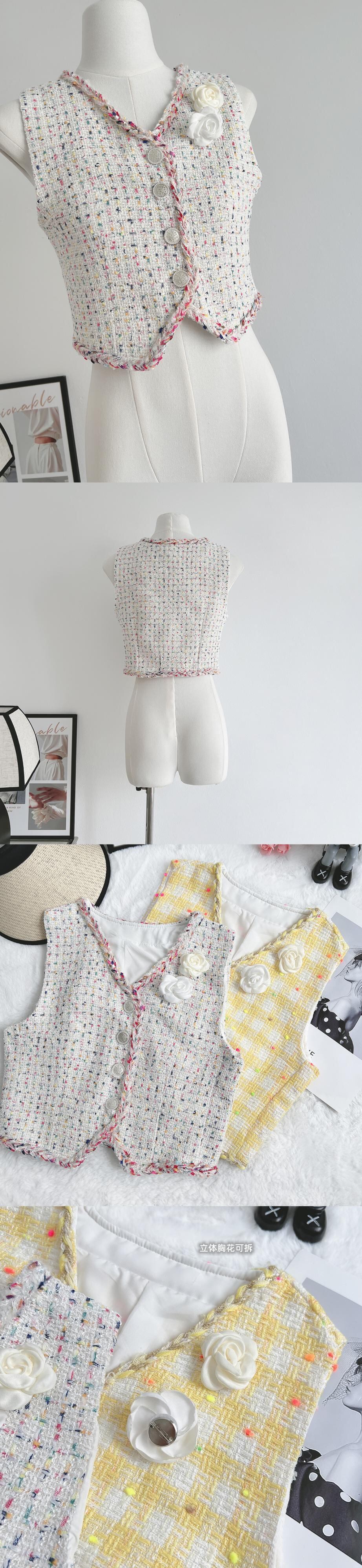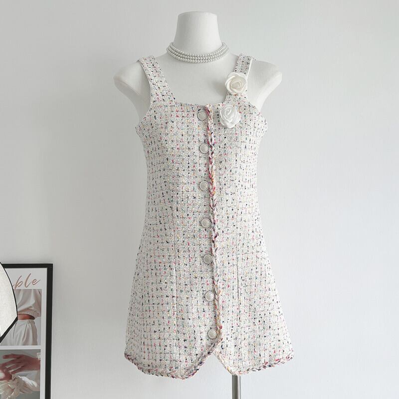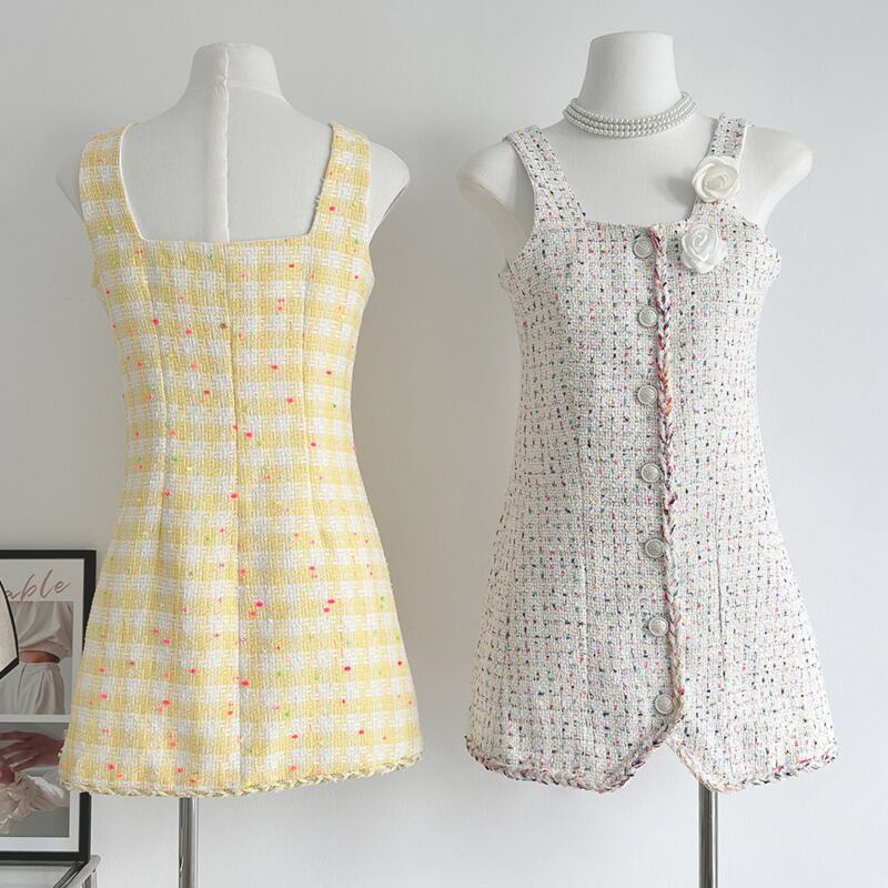 ストリートフレンチスモールフレグランツイードドレスシングルブレストミニサマードレス 夏物