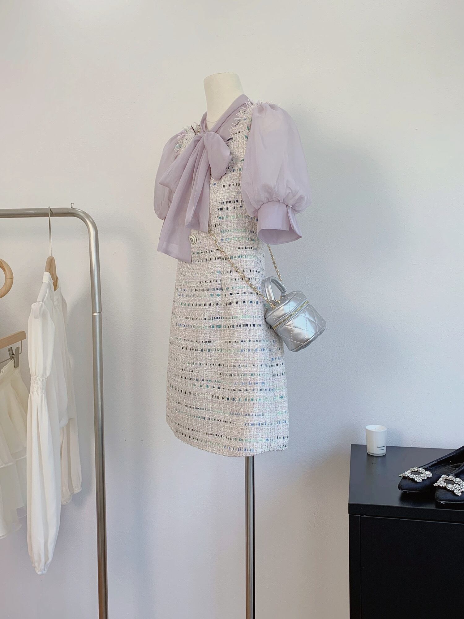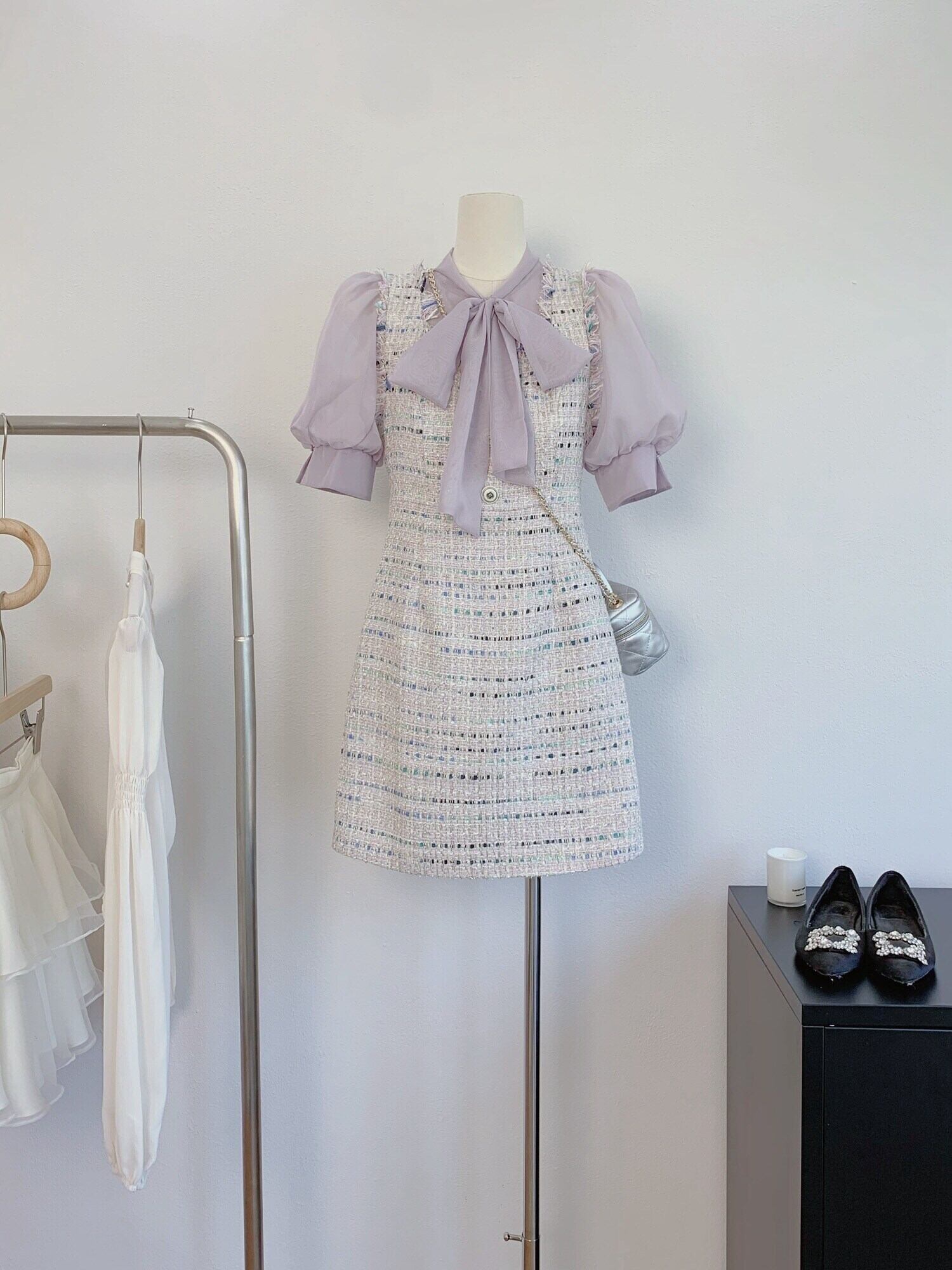 小さフレグランス 2 ピースセット衣装甘いシャツブラウス & ツイードドレスセットフランス夏ツーピーススーツ 大人ガーリー スウィート キュート カジュアル サマー 夏物