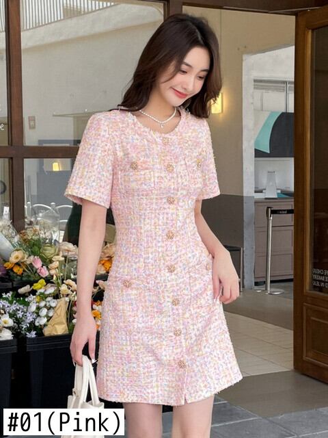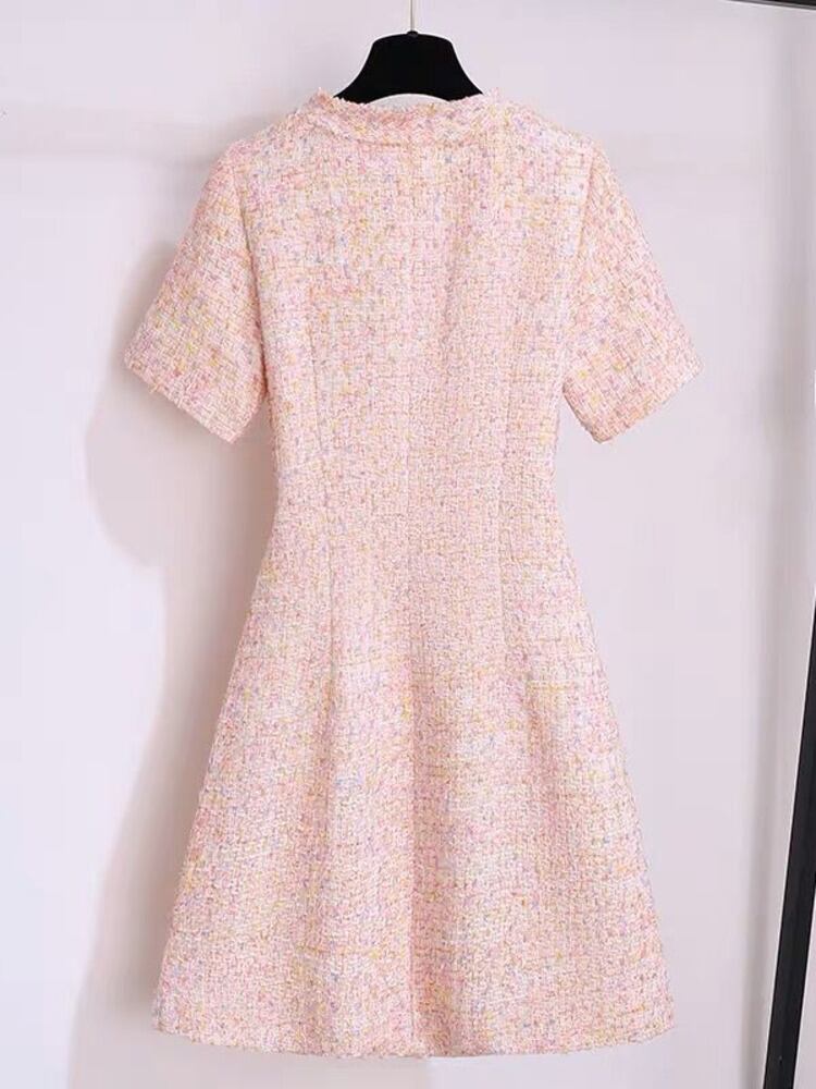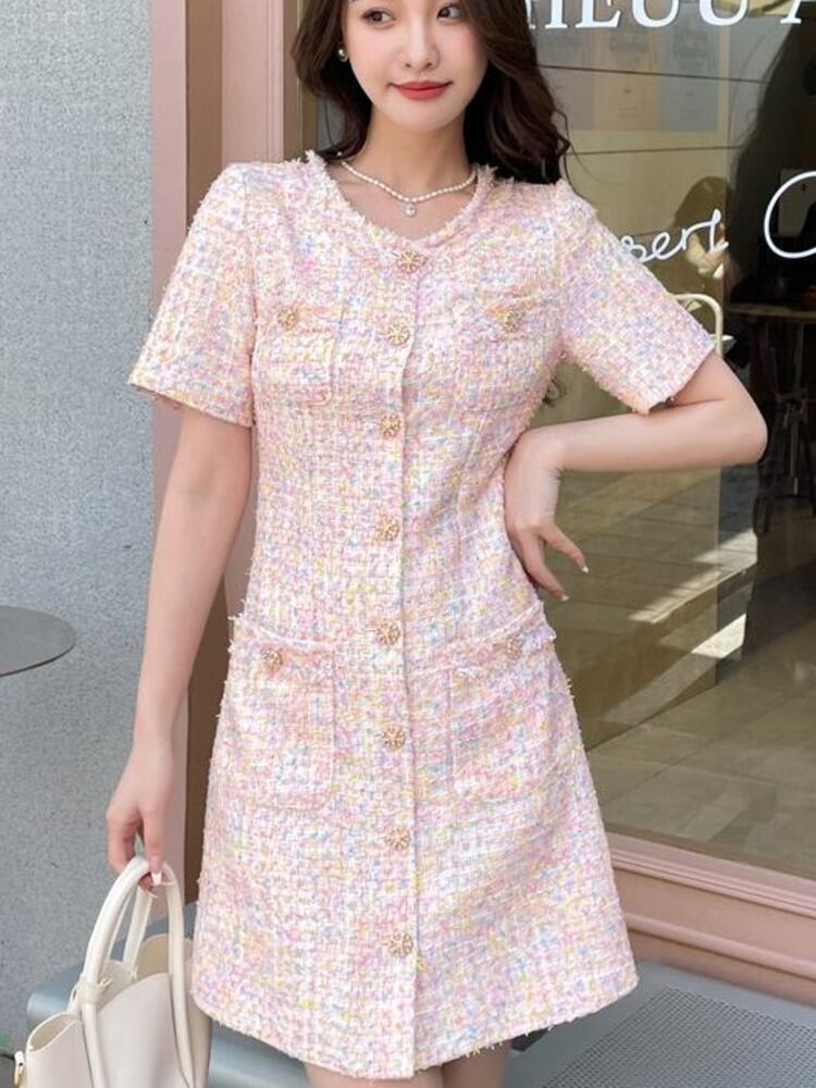 フランス小さフレグランツイードサマードレスシックスリムウエストショートドレス Vestidos 夏物