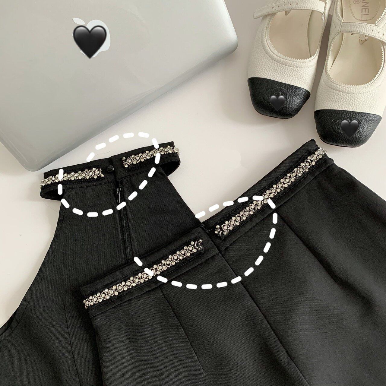 ストリートラグジュアリーダイヤモンドビーズツーピースセットノースリーブセクシークロップトップ+スカートスーツ2ピース衣装