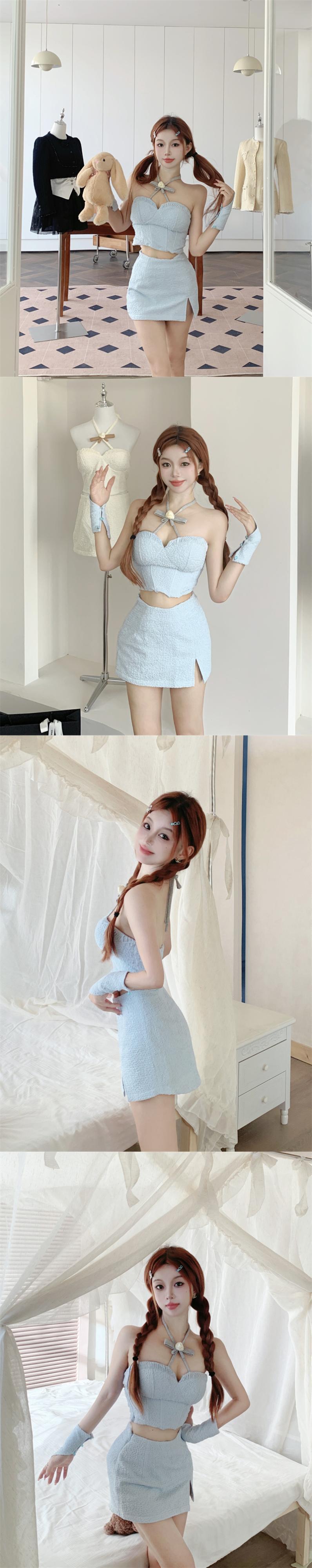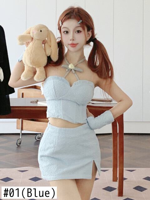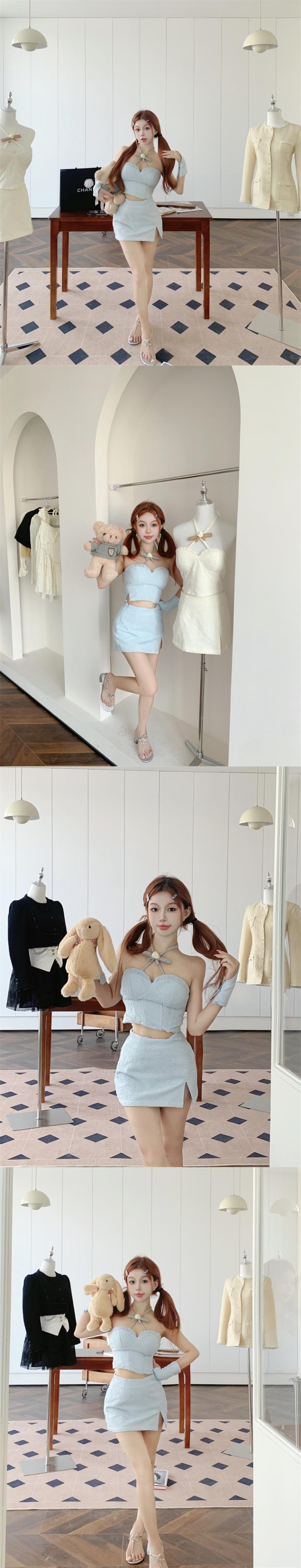 甘い小さ香りツーピースセットセクシーホルタースリングクロップトップ + ボディコンスカートスーツ夏 2 ピース衣装 大人ガーリー スウィート キュート カジュアル サマー 夏物