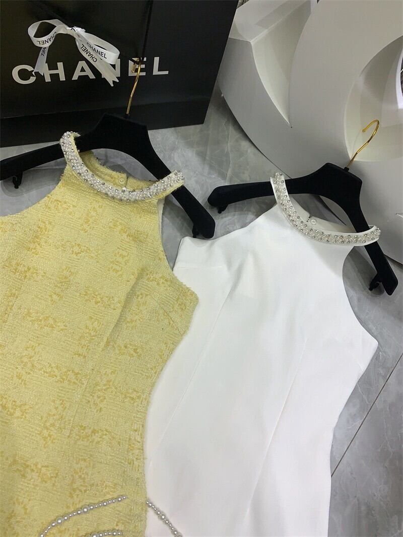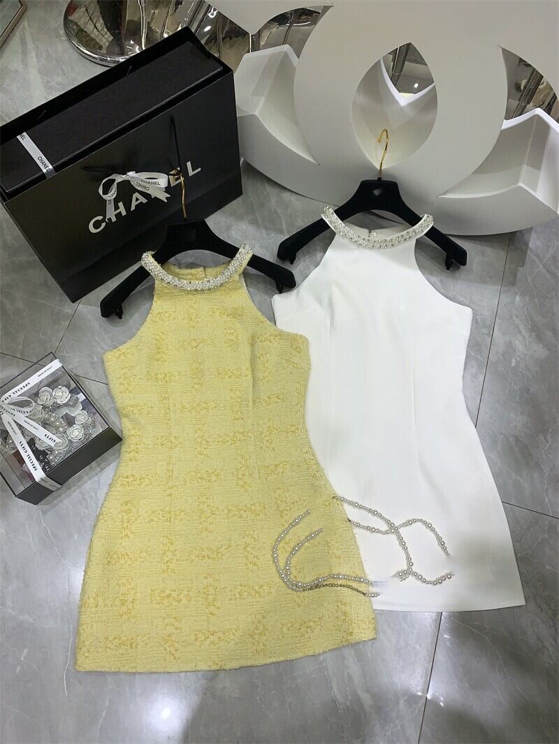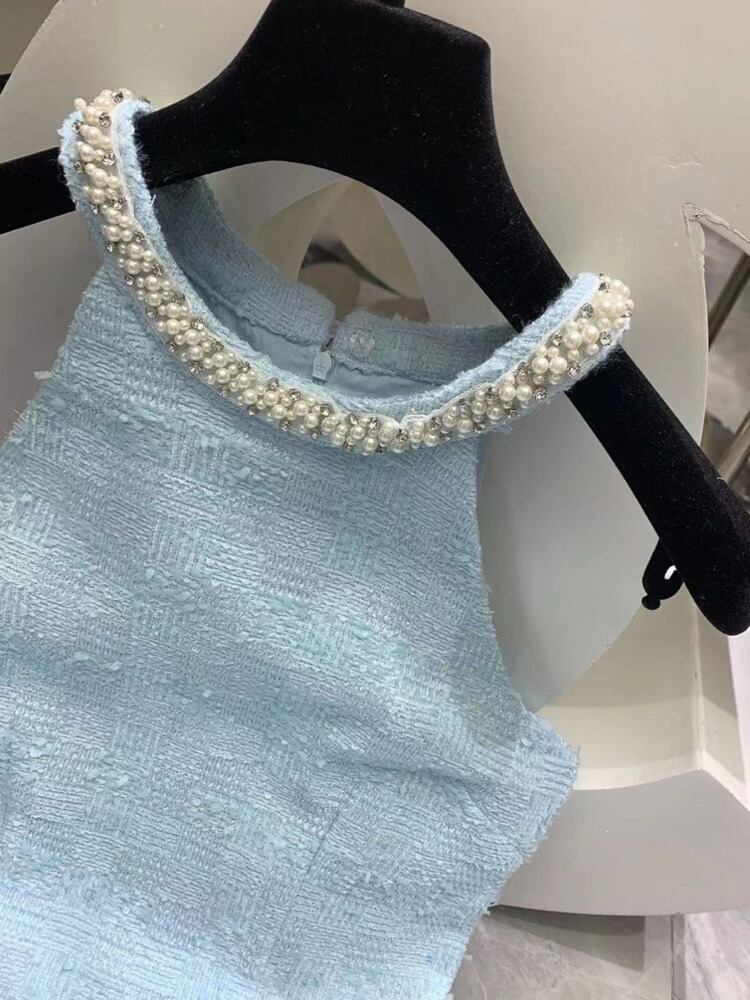 HotSweet 小さ香りツイードドレスフレンチ高級ダイヤモンドビーズホルターセクシーサマードレスローブ 大人ガーリー スウィート キュート カジュアル 夏物