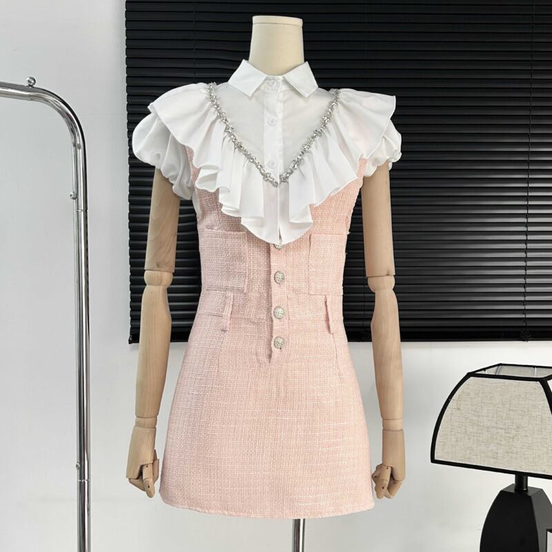 フランス小さフレグランス 2 点セットバブル袖シャツトップ + ドレススーツ甘い夏 2 点セット 大人ガーリー スウィート キュート カジュアル サマー 夏物