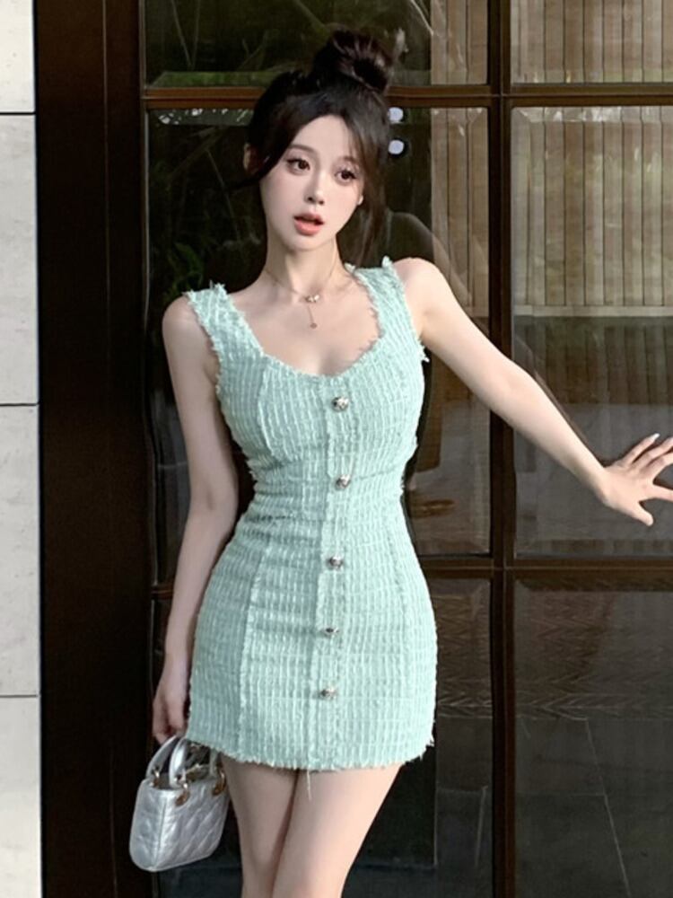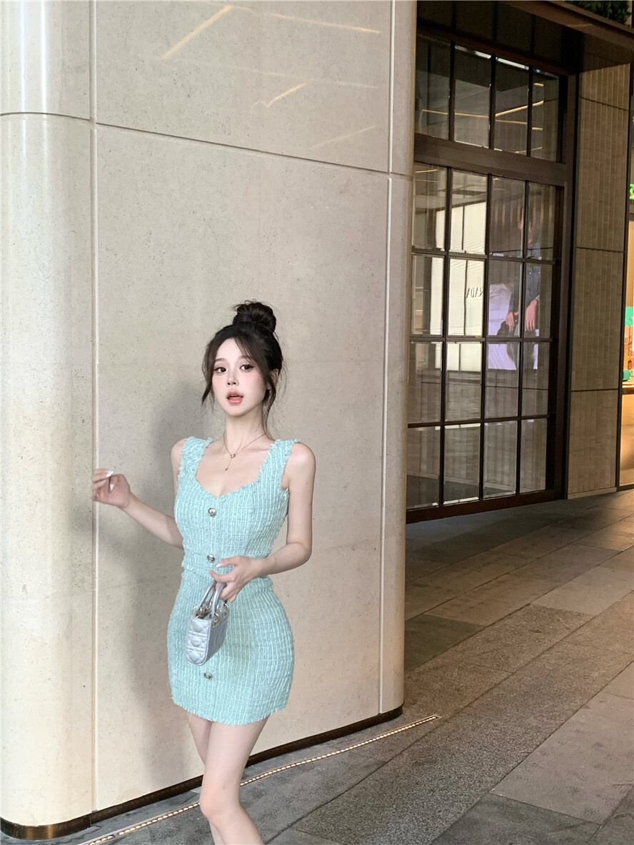 フレンチラグジュアリースモールフレグランスツイードドレス夏スリムパーティードレス サマー 夏物