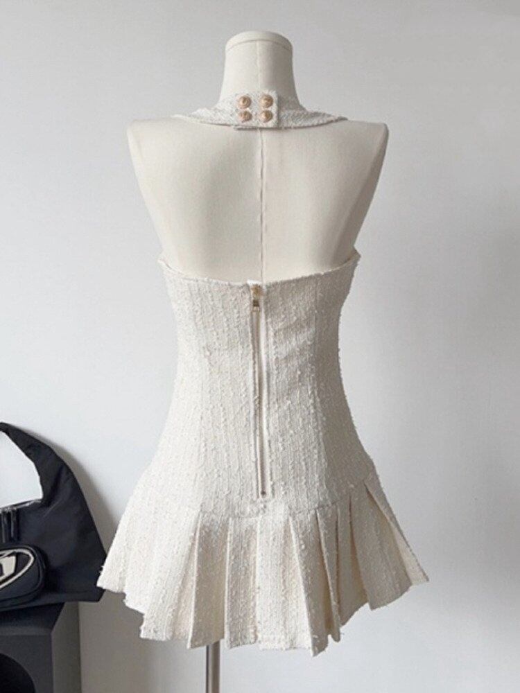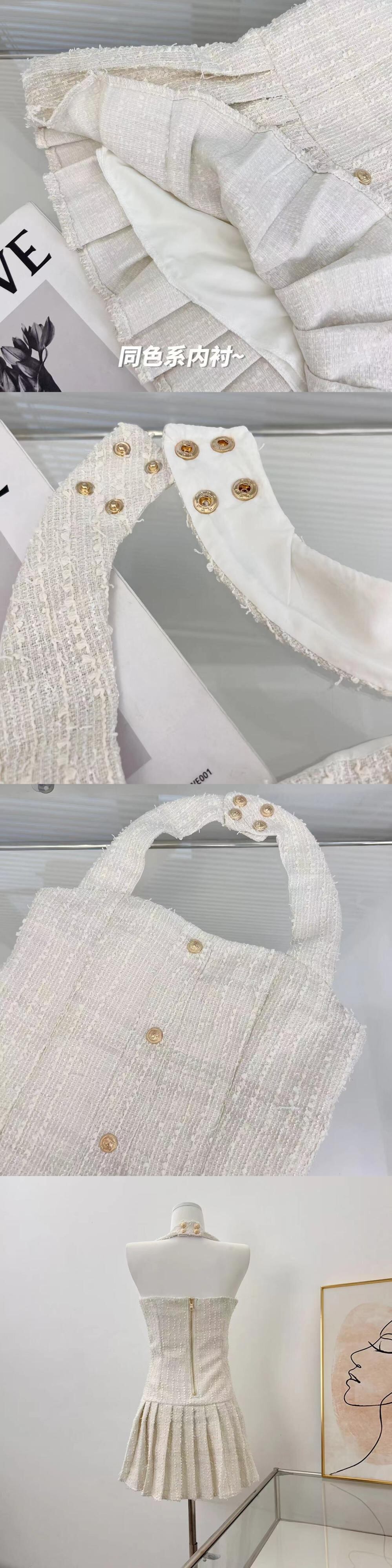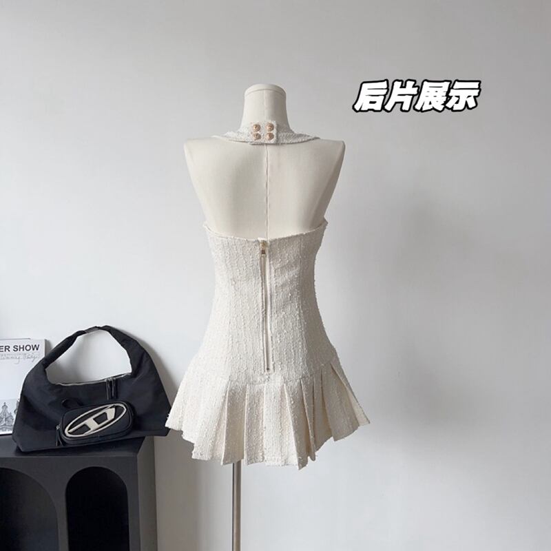 フレンチスモールフレグランスウールサマードレスホットスウィートセクシーホルターパーティードレス 大人ガーリー キュート カジュアル 夏物