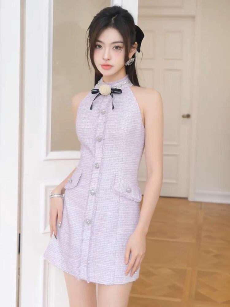 甘い小さ香りツイードドレスフレンチ高級ダイヤモンドサマードレス Hotsweet セクシーパーティードレス 大人ガーリー スウィート キュート カジュアル 夏物