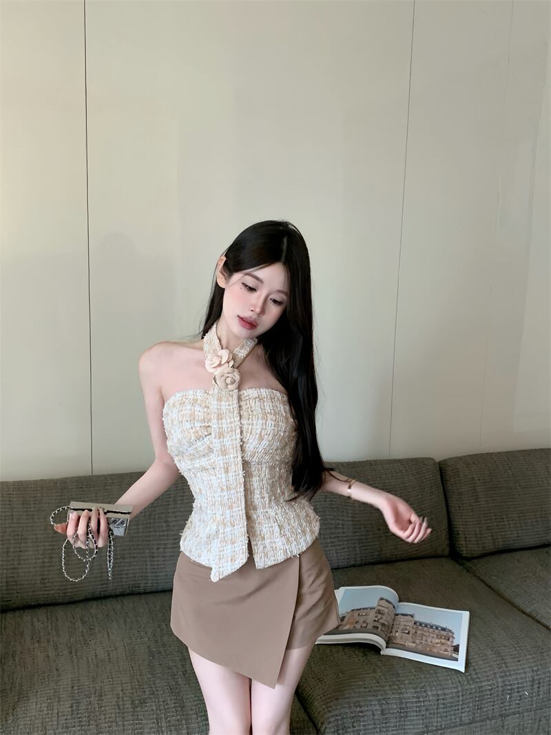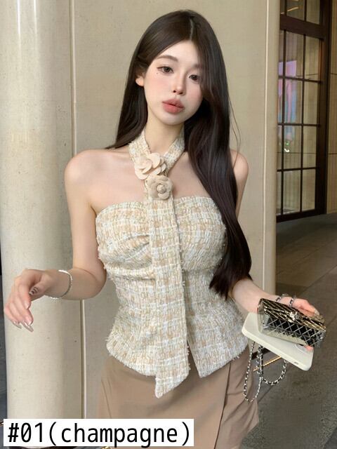 フレンチレトロクロップトップガールズホットスイートセクシースリムキャミソールシンプルシックオールマッチサマートップス 大人ガーリー スウィート キュート カジュアル 夏物
