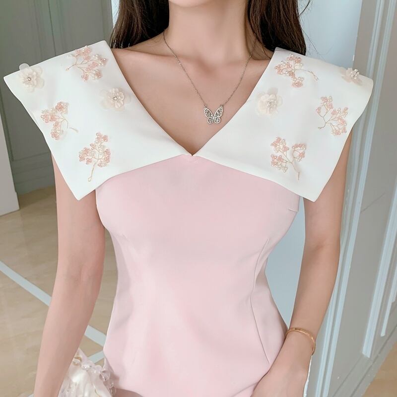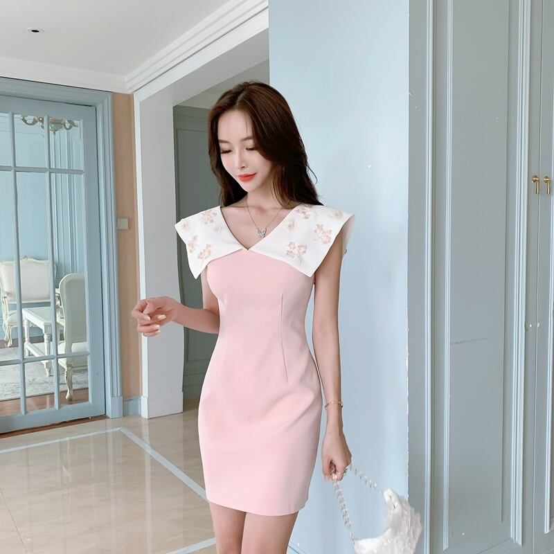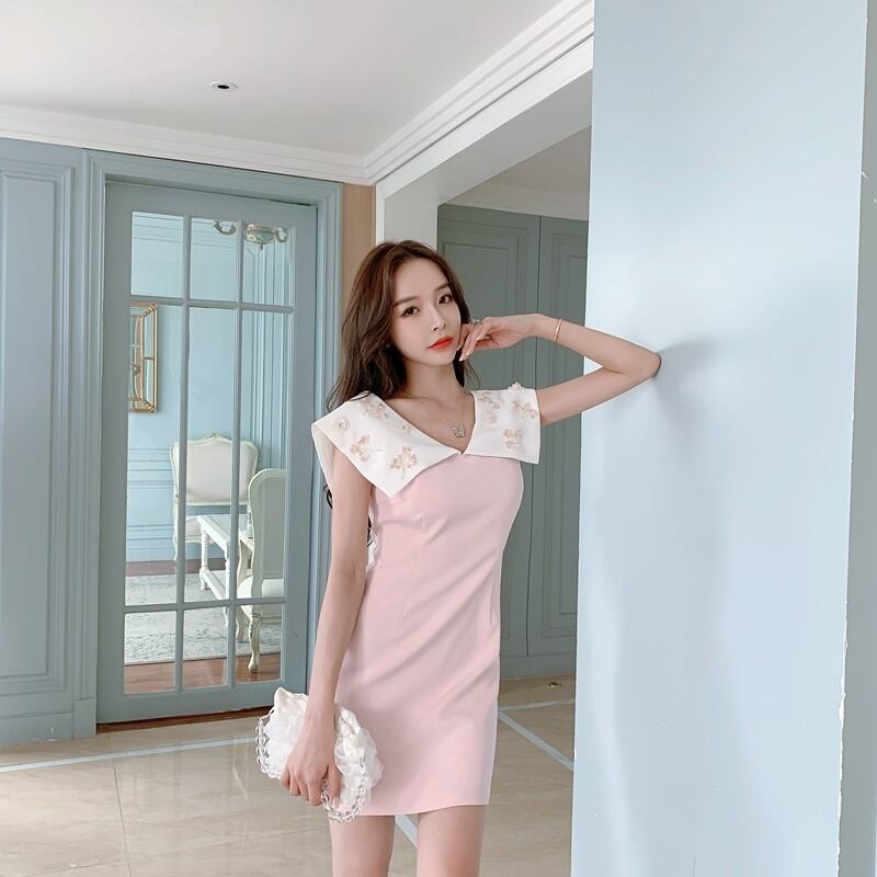 フランスサマードレスオフィスレディシックビーズスリムショートドレスパーティー Vestidos 夏物 会社 学校 通勤や通学にも