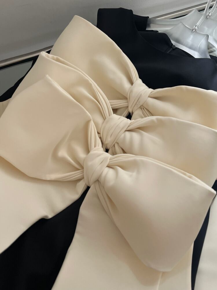OL ミニドレスフレンチスモールフレグランスノースリーブビッグリボンサマードレスローブ 夏物