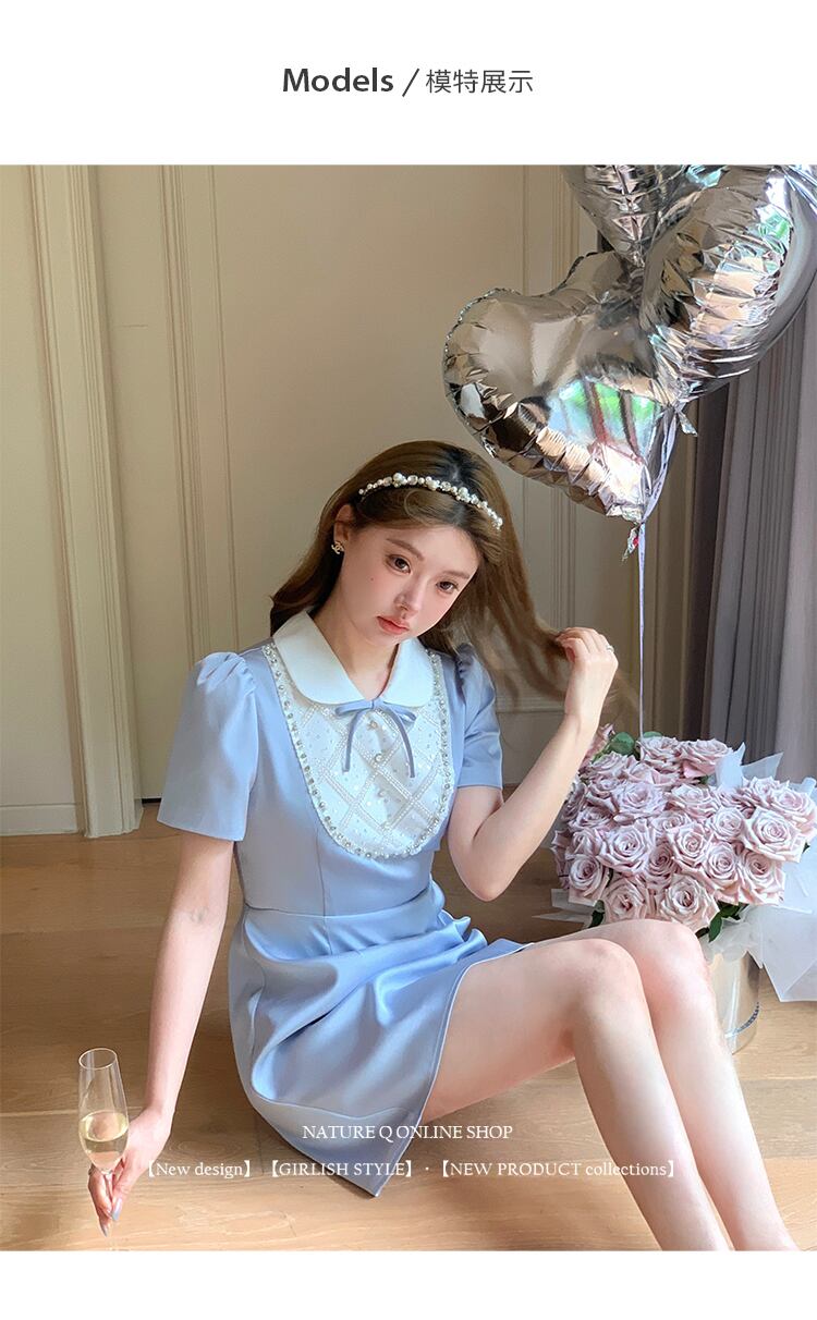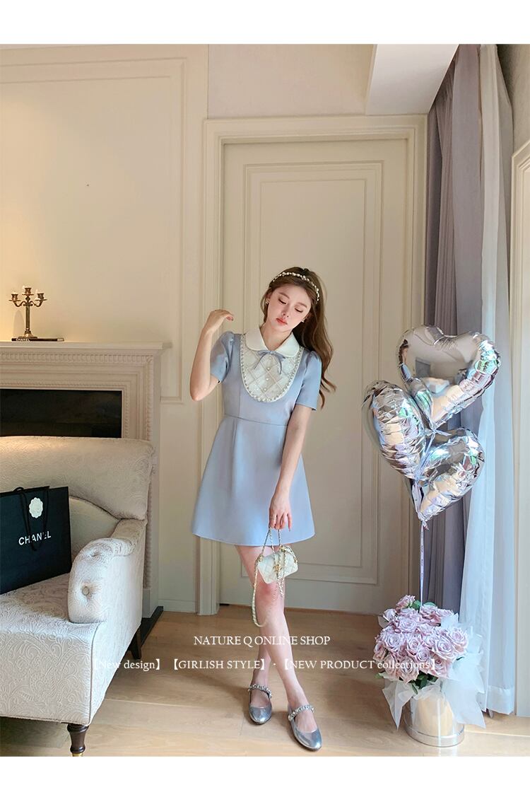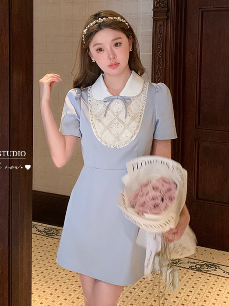ストリートフレンチ高級ダイヤモンド弓サマードレススウィートシックミニパーティードレスローブ Vestidos リボン 大人ガーリー キュート カジュアル 夏物