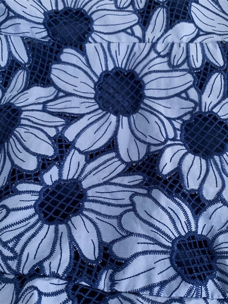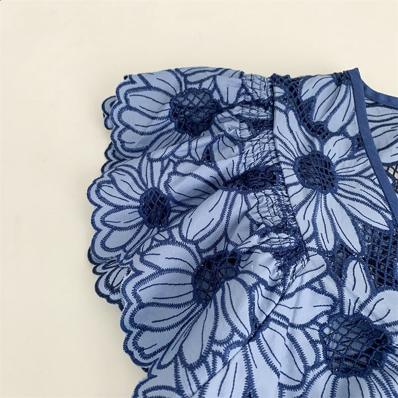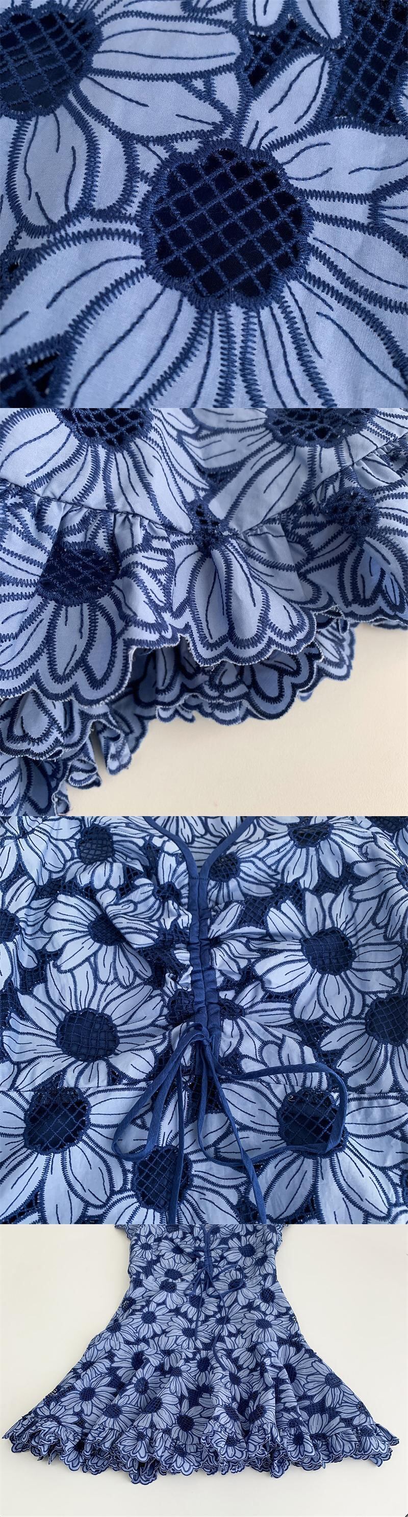 フランスサマードレス滑走路刺繍中空アウト V ネックレースドレス高級パーティーローブ 夏物 Vネック