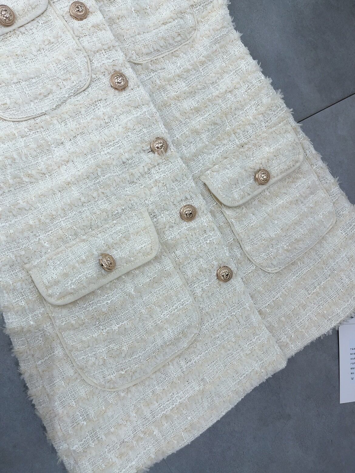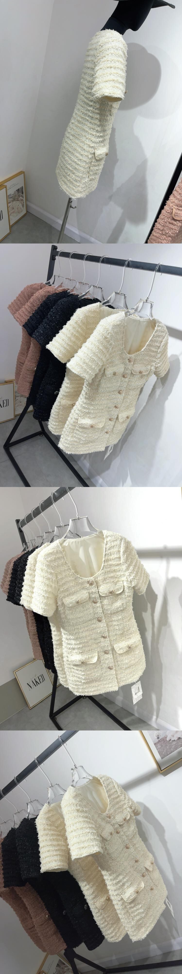 高級滑走路小さフレグランツイードドレスフレンチ半袖サマードレス ショート ハーフスリーブ 夏物