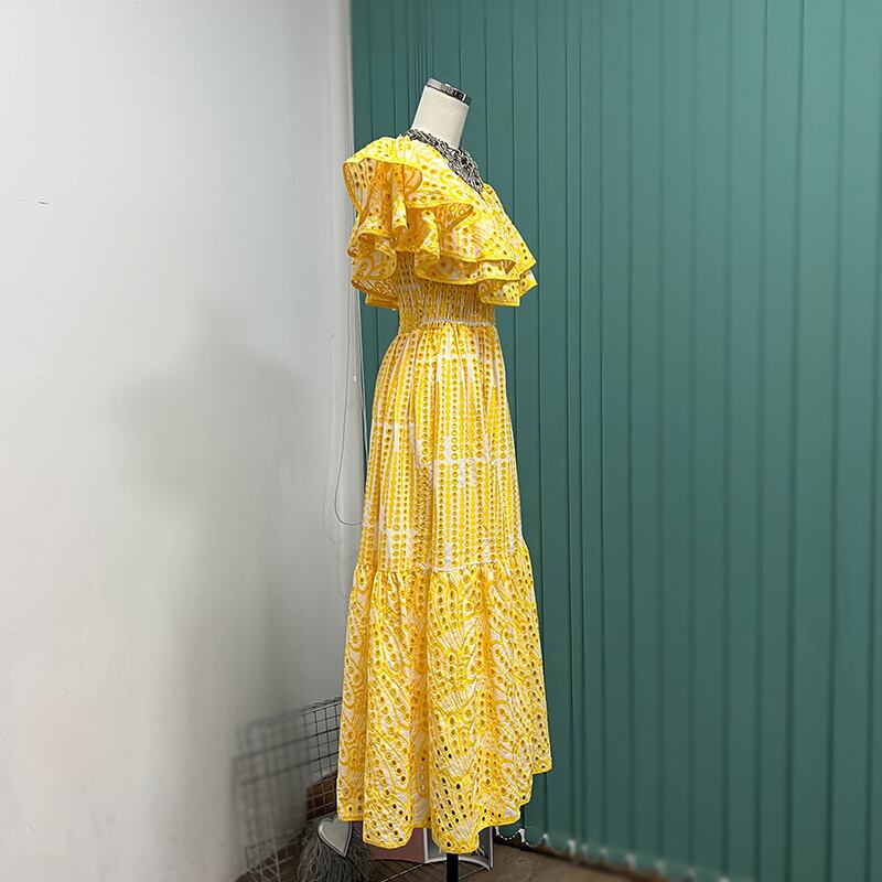 ストリートフレンチカットアウトロングドレススラッシュネックウエストホリデービーチドレス夏自由奔放生きるドレスvestidos サマー 夏物