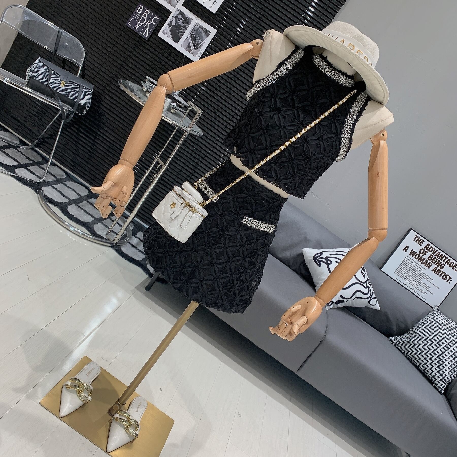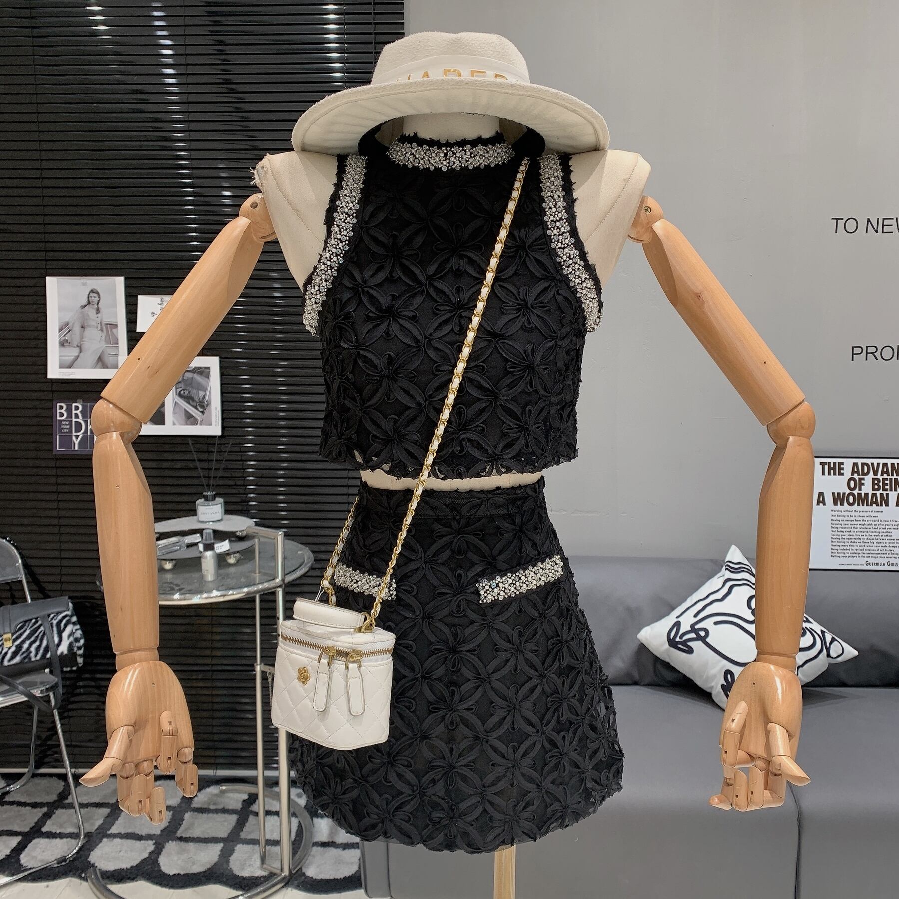 フランス高級ビーズ小さ香りツーピースセットセクシークロップトップ + スカートスーツジャカード 2 点セット