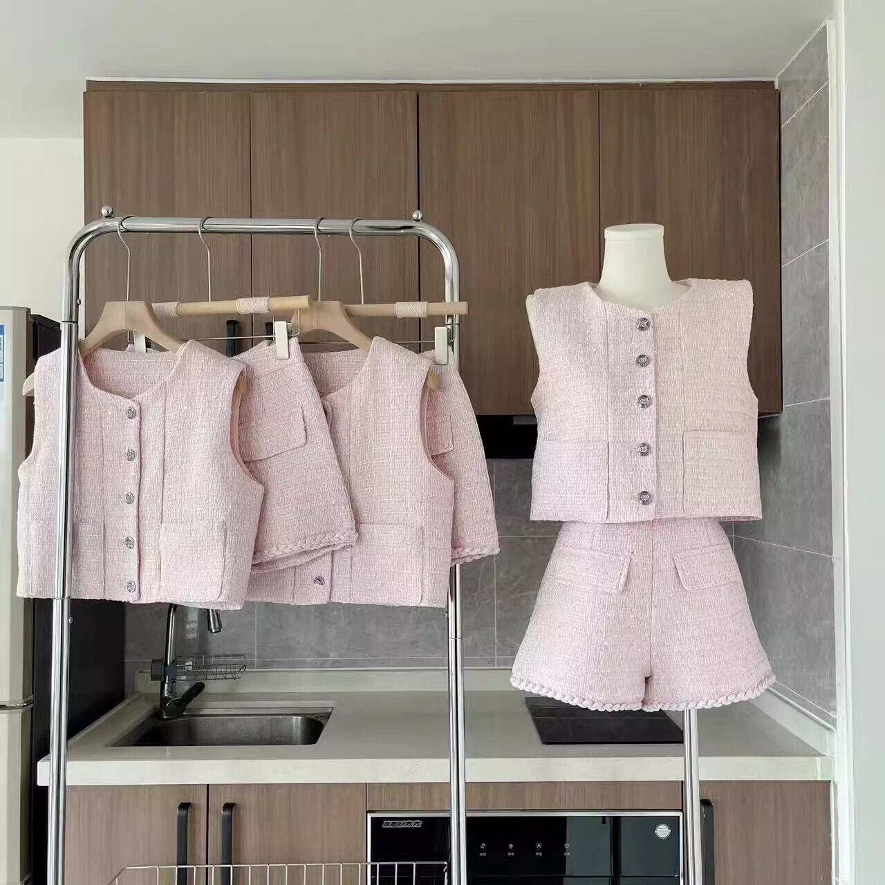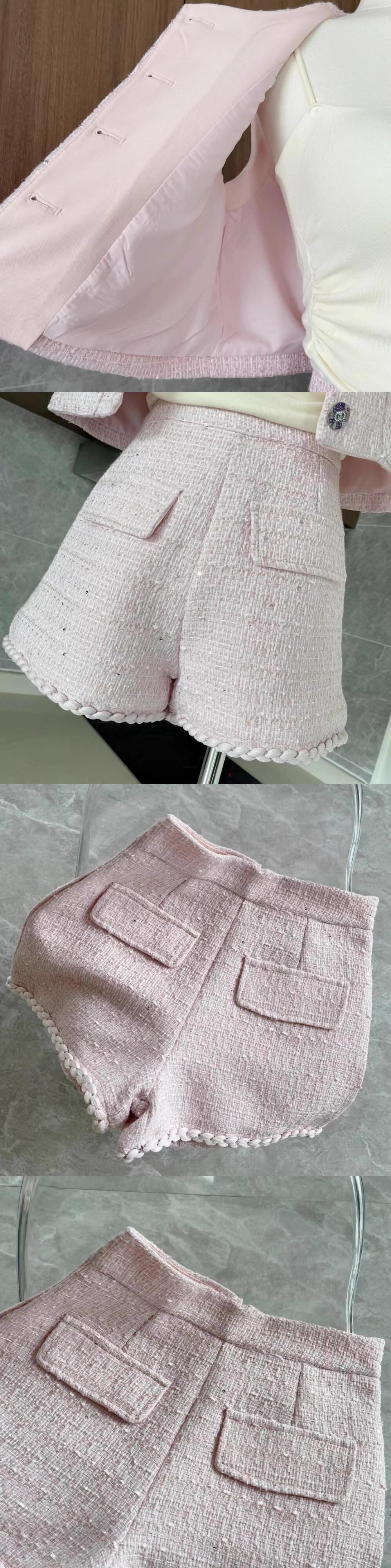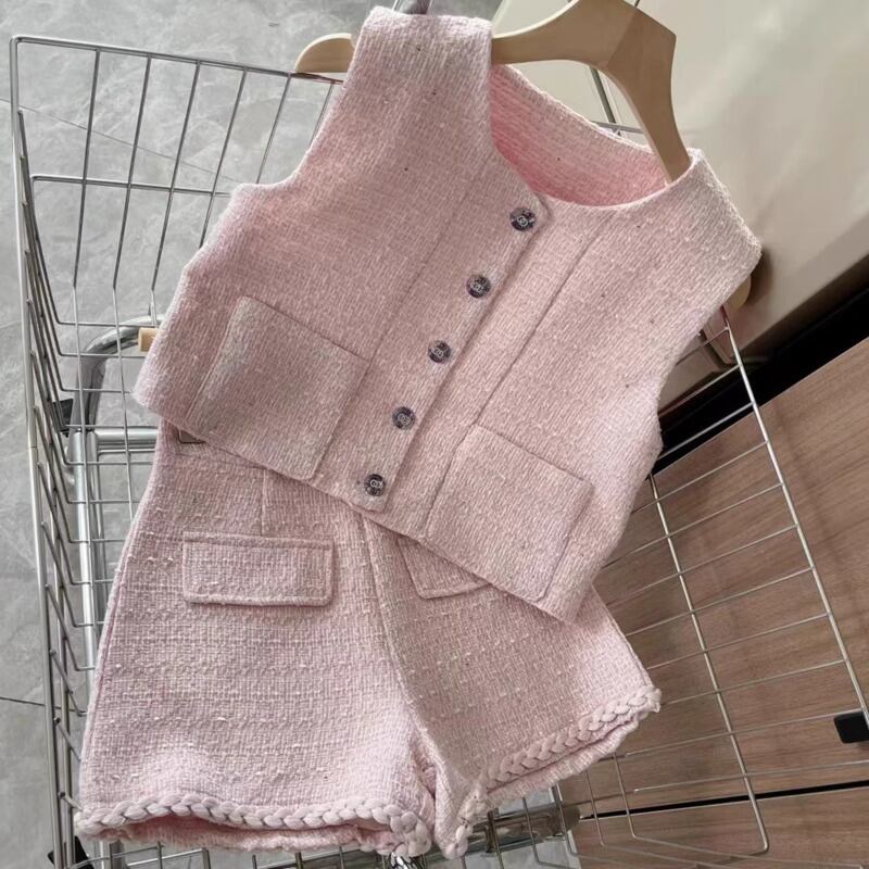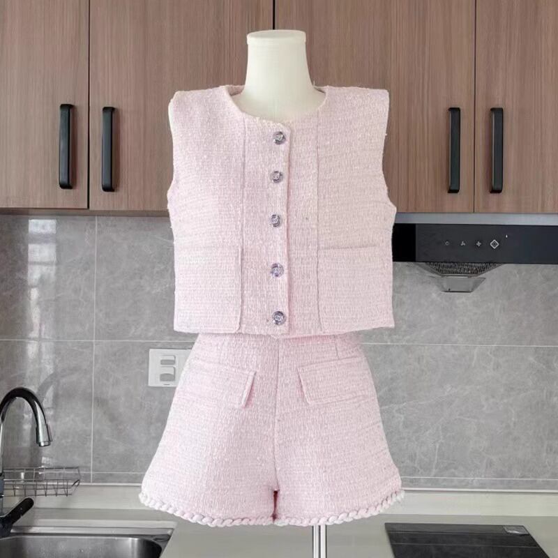 フランス小さ香りツイード 2 点セットショートベストジャケットコート + ショートセット甘い 2 ピースパンツセット 大人ガーリー スウィート キュート カジュアル