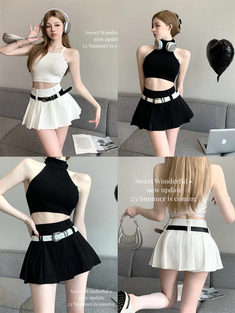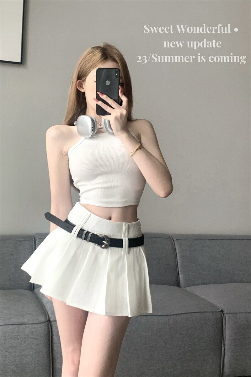 夏 Y2K ストリートセクシークラブプリーツスカートベルト A ラインローライズ極端女子 Hotsweet ショートミニスカート 大人ガーリー スウィート キュート カジュアル サマー 夏物 ハーネス Aライン